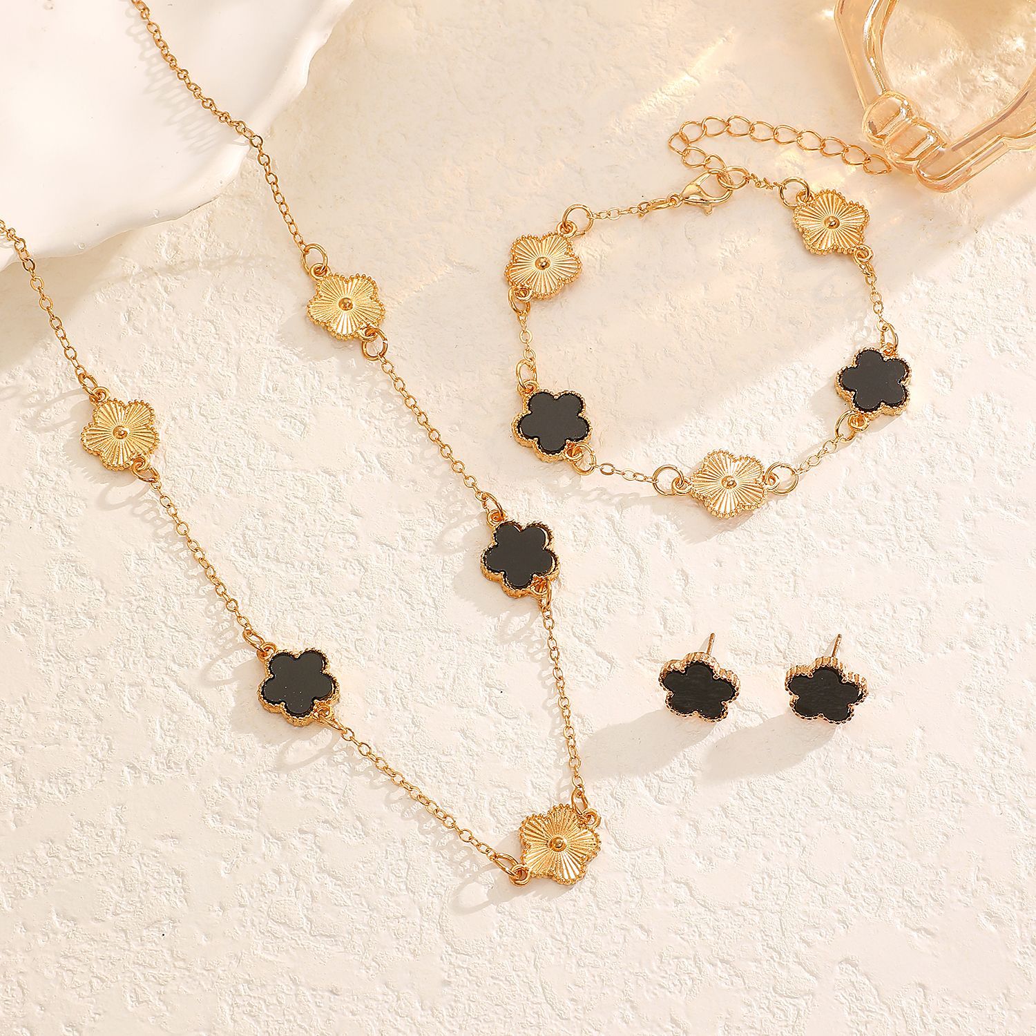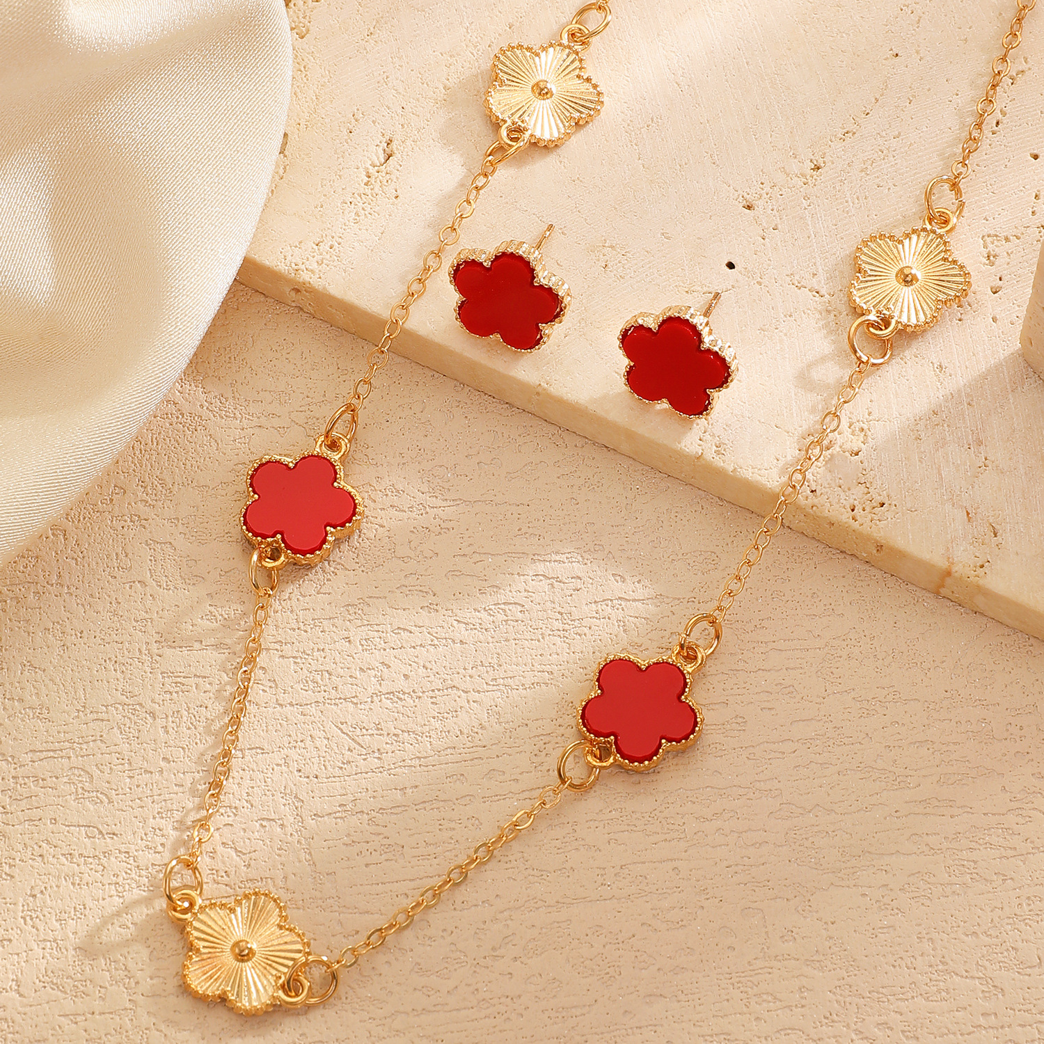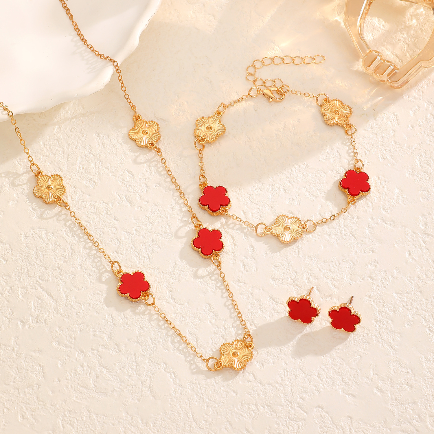 Color: Red floral five-petal set (earrings + bracelet + necklace)