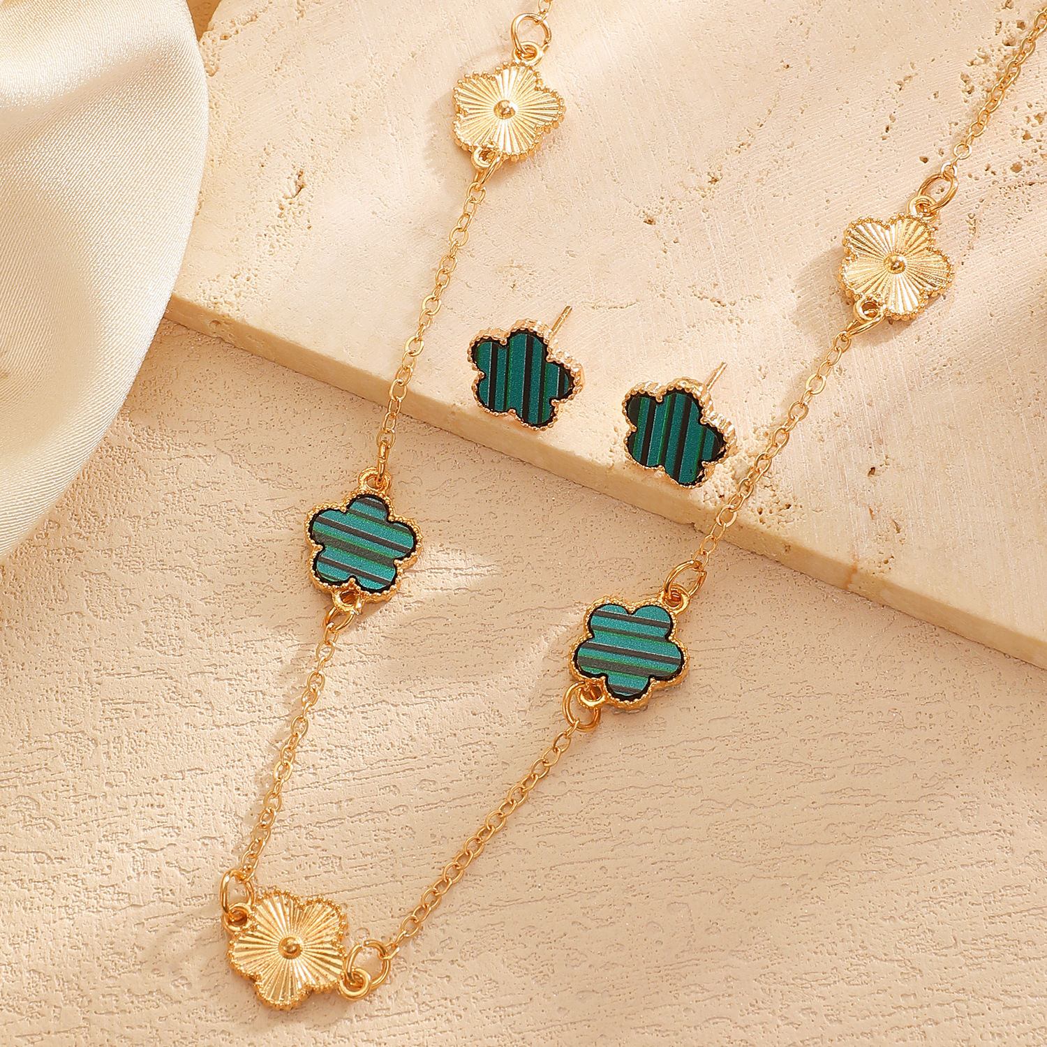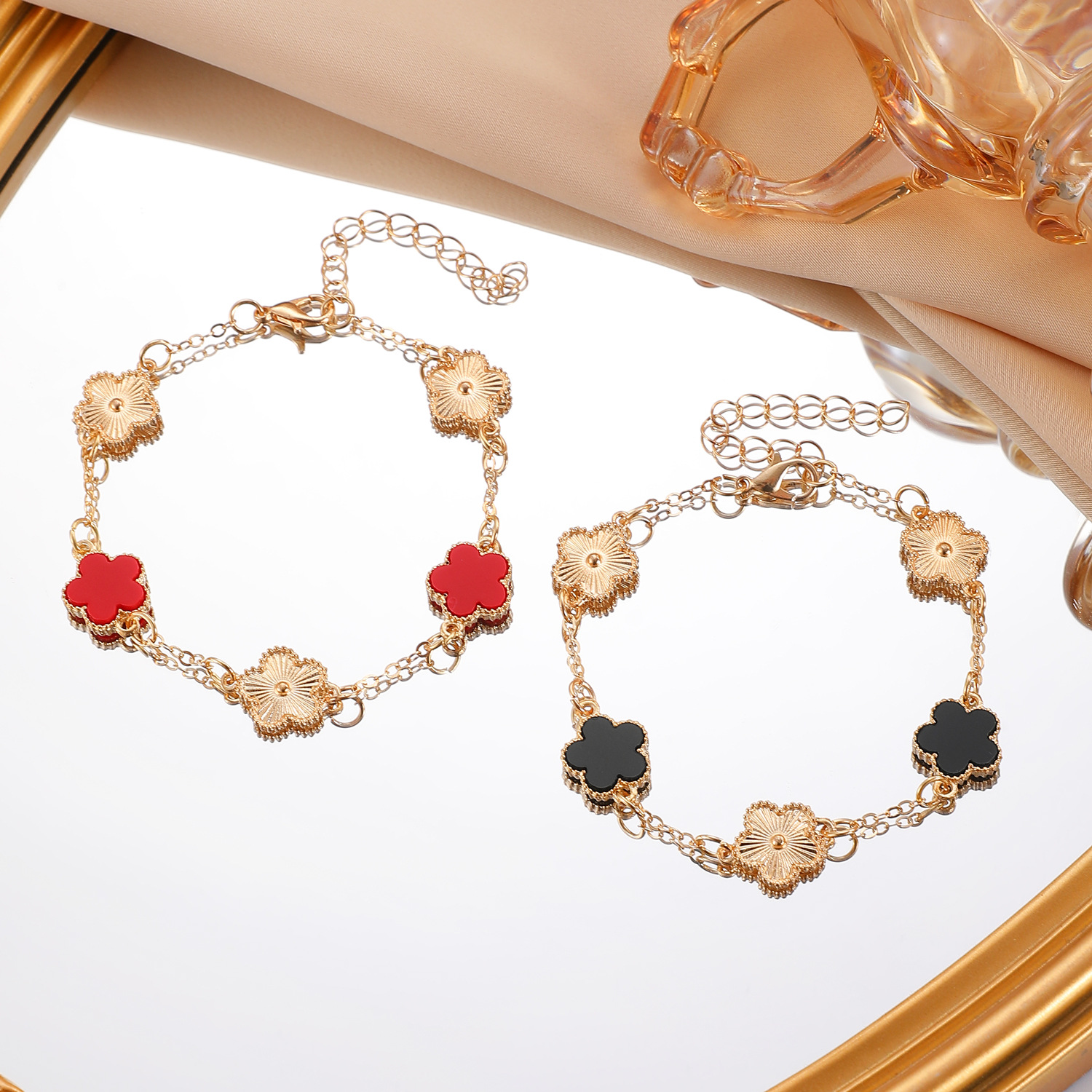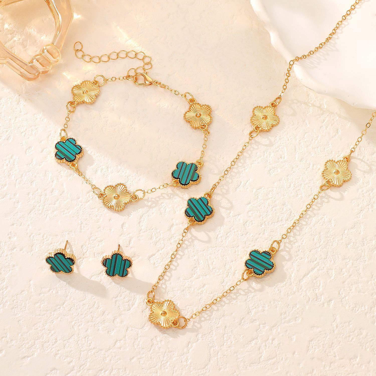 Color: Red floral five-petal set (earrings + bracelet + necklace)