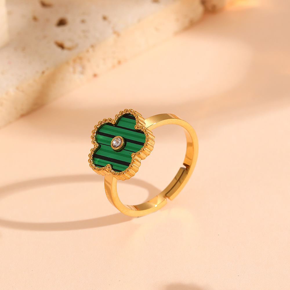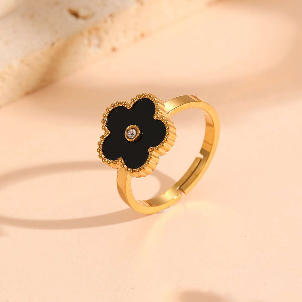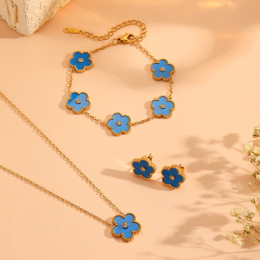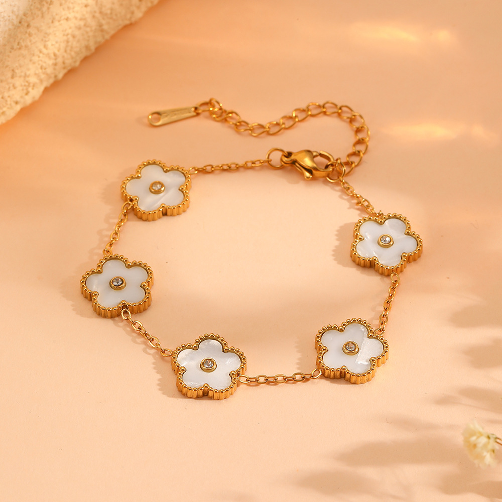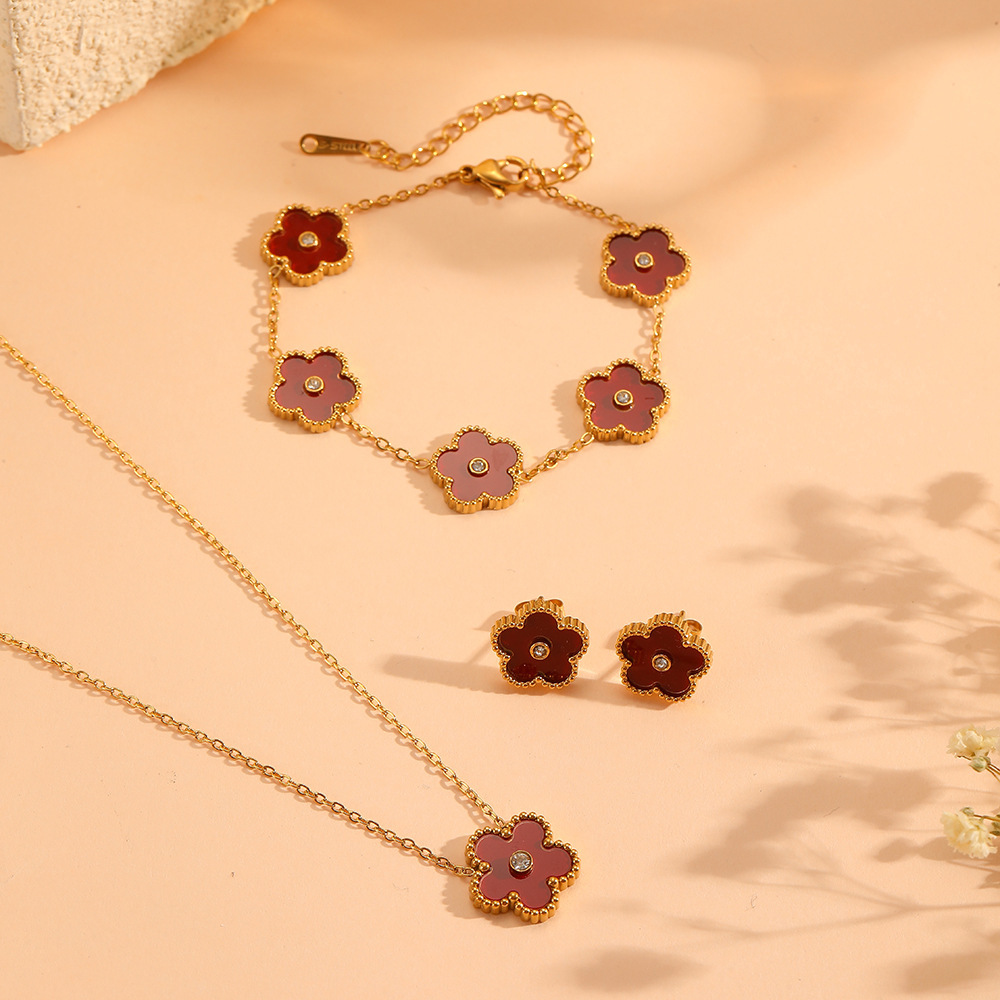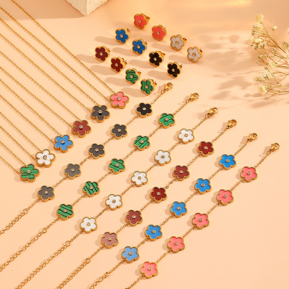 Color: Pink shell five-leaf flower center diamond stud earrings