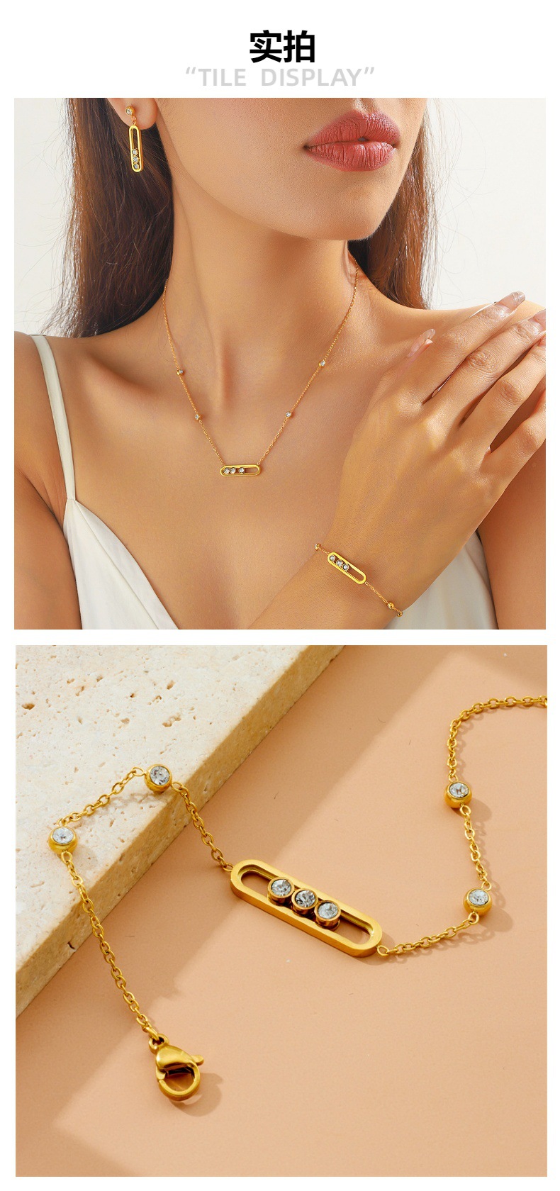 New Fashionable European and American Hot-Selling Long Diamond-Encrusted Stainless Steel Gold-Plated Versatile Necklace Bracelet Earring Set for Women