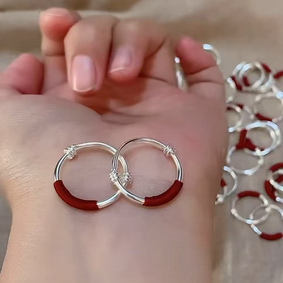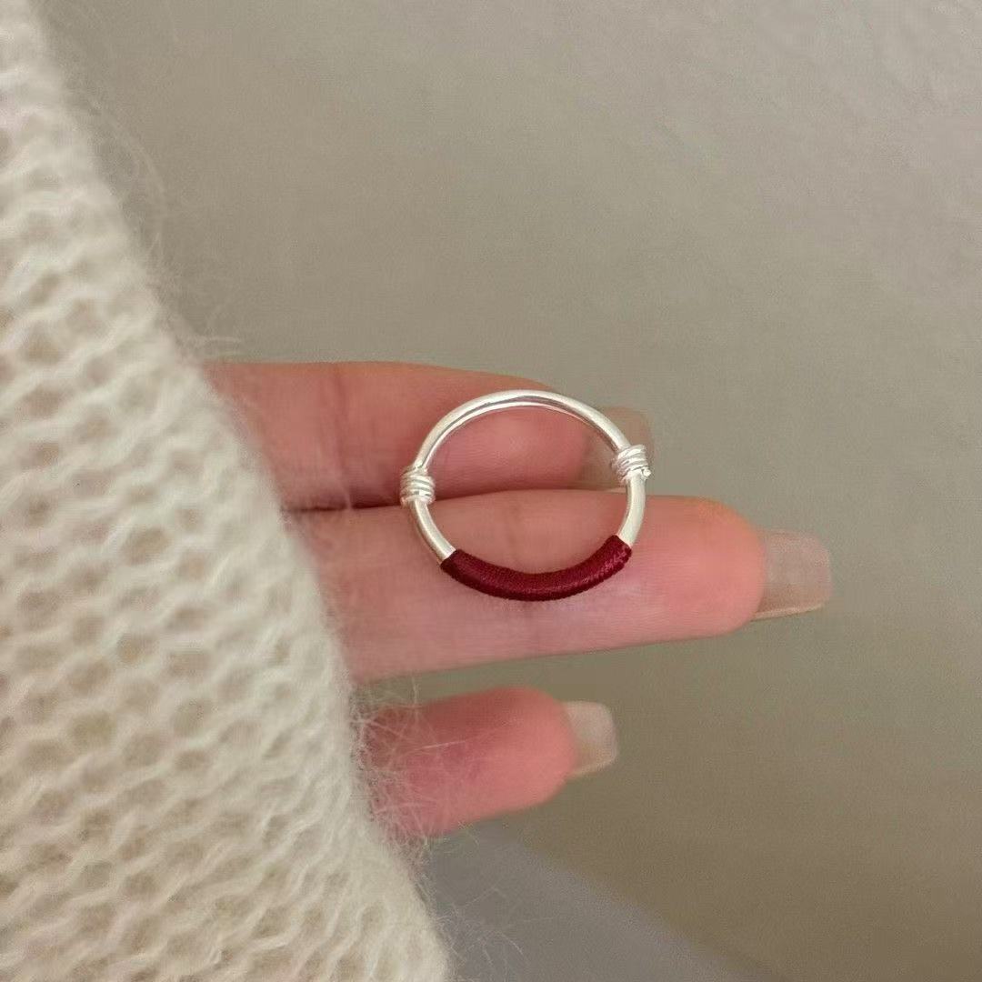 Small Red Rope Ring for Women, Plain Band, Index Finger, Niche Design, Japanese Light Luxury, Fashionable and Exquisite, Friendship Couple Ring