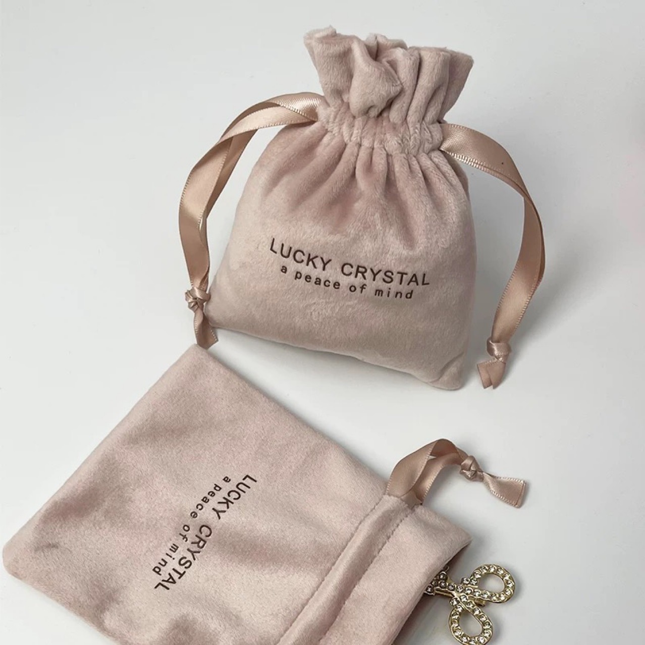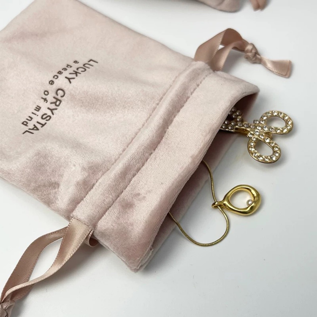 Pink Velvet Drawstring Pouch High-End Gift Bag Jewelry Packaging Bag Jewelry Pouch Drawstring Small Cloth Bag Can Print Logo