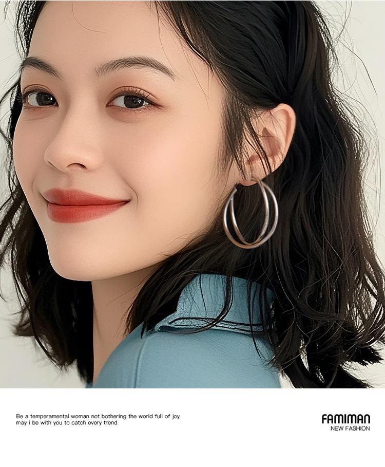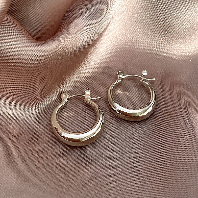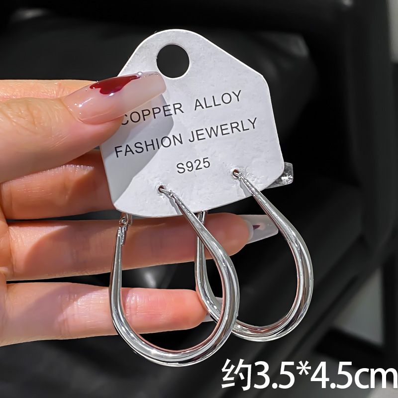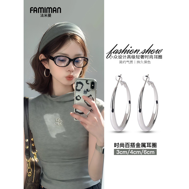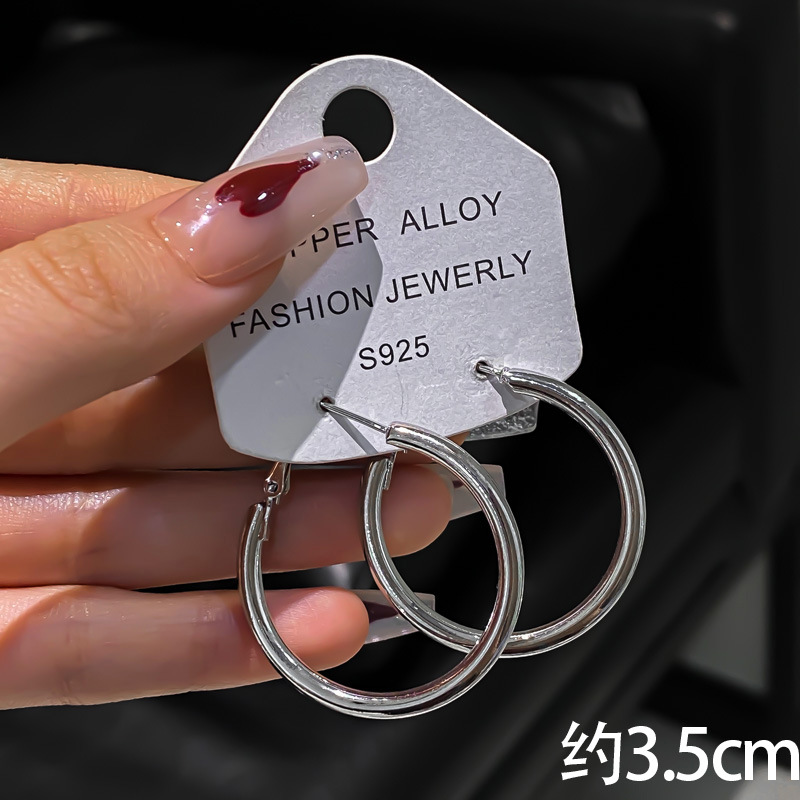 Color: 4-silver minimalist plain hoop earrings-5cm