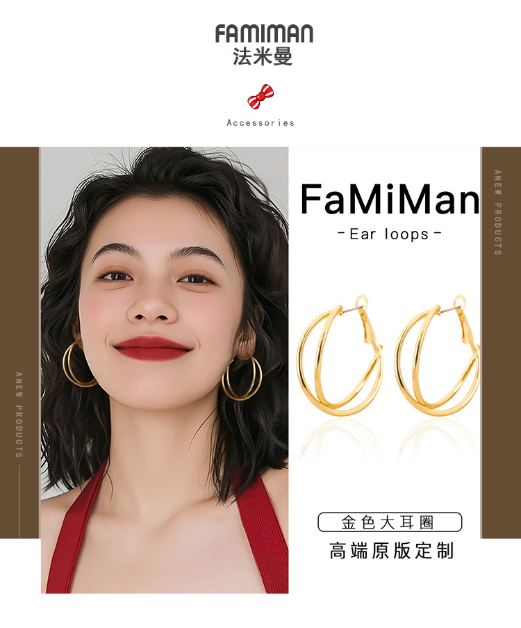 Color: 3-silver minimalist plain hoop earrings-6cm