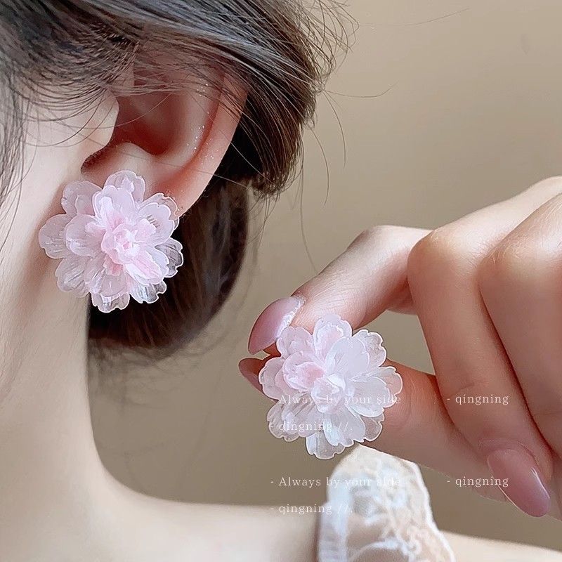Color: White pink core camellia earrings