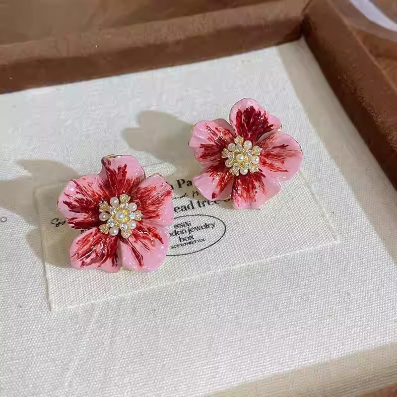 Color: Red drip glaze flower earrings