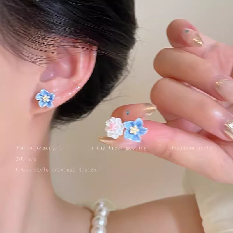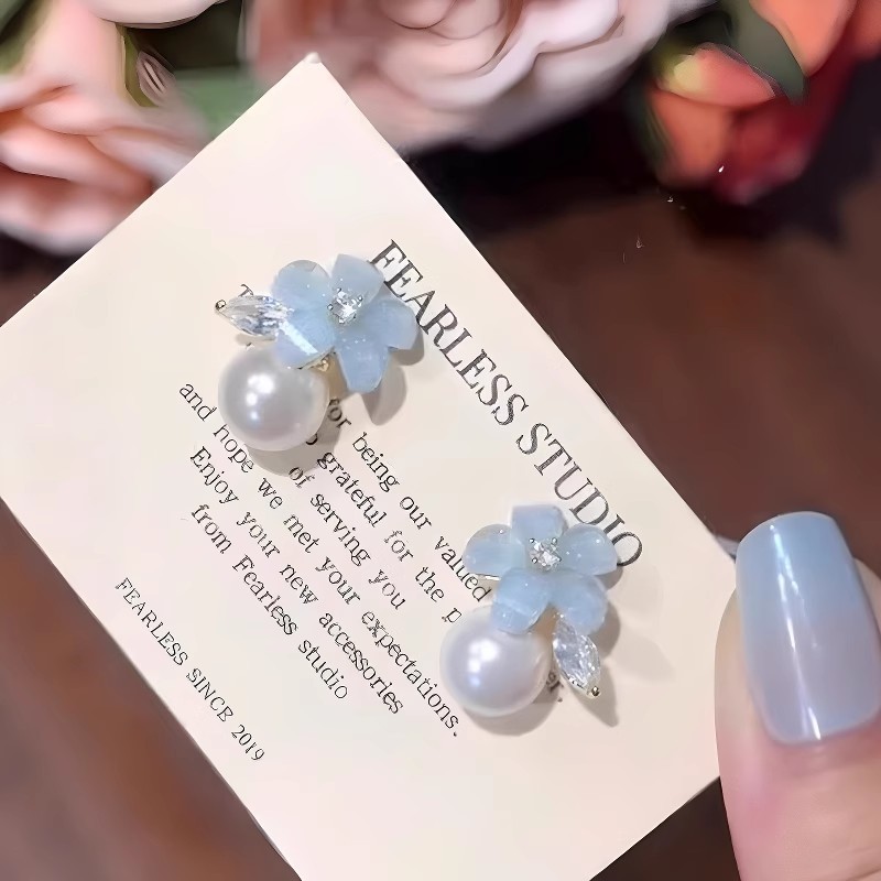 Color: Blue flower pearl stud earrings