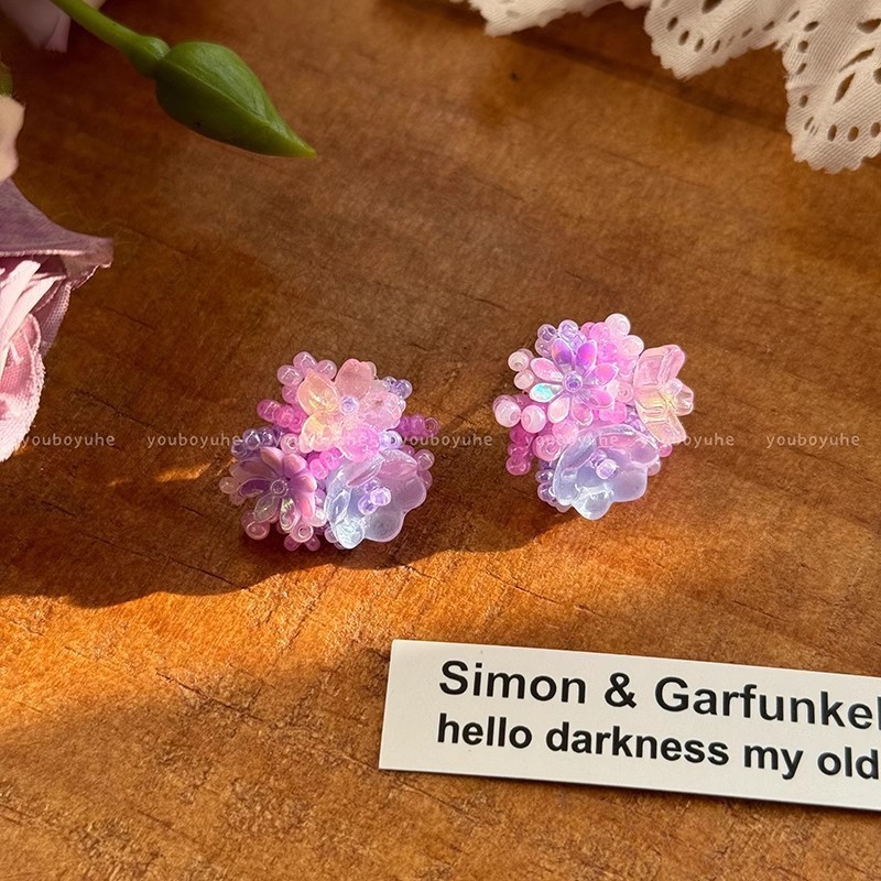 Color: Purple flower beaded stud earrings