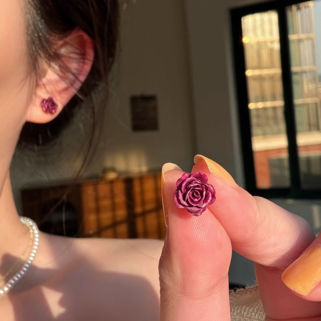 Color: Pure purple rose stud earrings