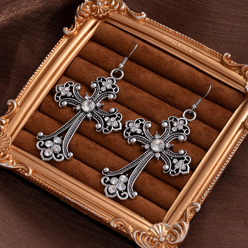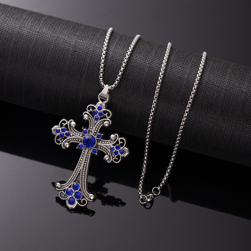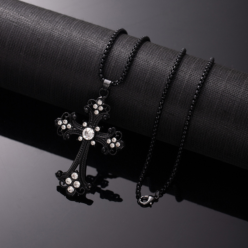 欧美跨境饰品菱形项链十字架吊坠项饰简约复古百搭男装配饰毛衣链饰品批发货源