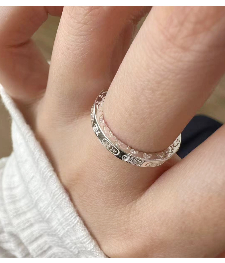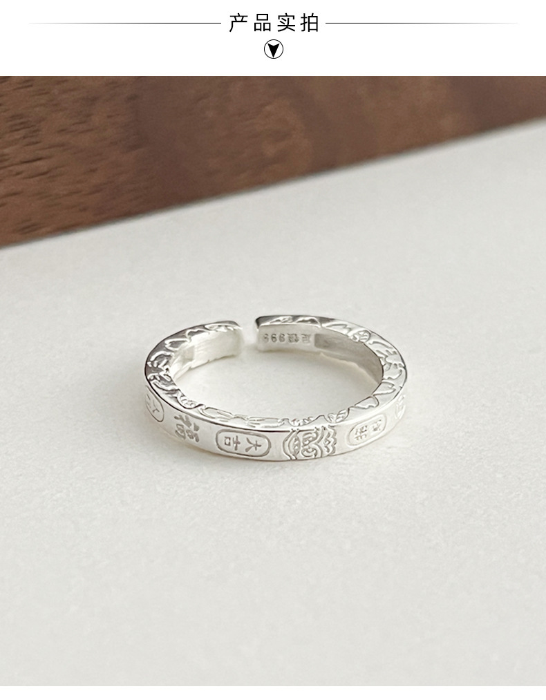 New Retro Fortune-Attracting and Blessing Ring for Men and Women, Ancient Style and National Trend, Open Adjustable Ring, Blessing Ring