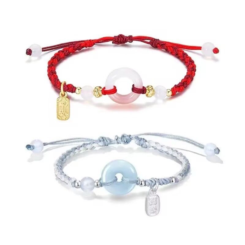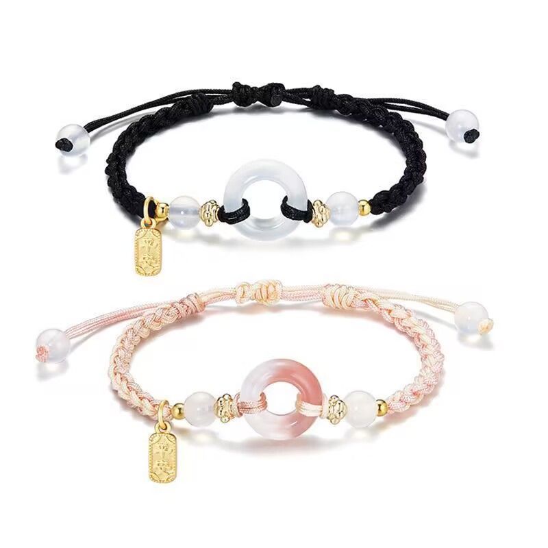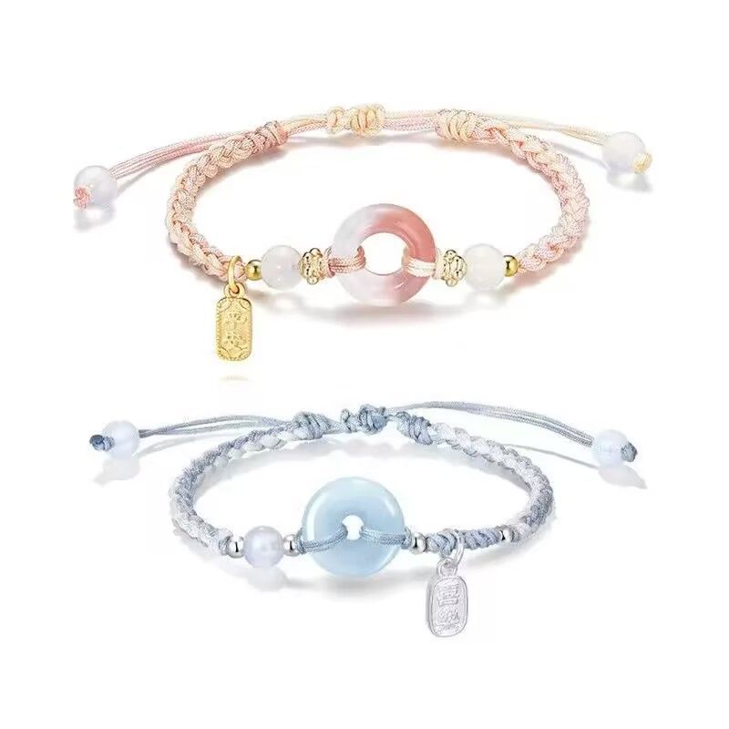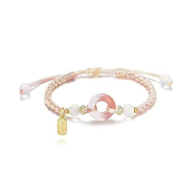 Peach Blossom Pink Bracelet Safe Handmade Girl's Woven Color Matching High-Value Braided Rope Bracelet for Best Friends