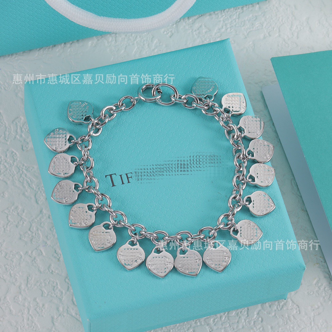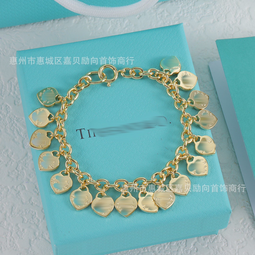 Bracelet European and American Jewelry Peach Heart Thick Chain Personalized Retro Design Love-Shaped Pendant High Version Bracelet Wholesale