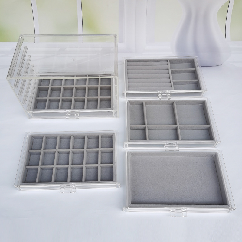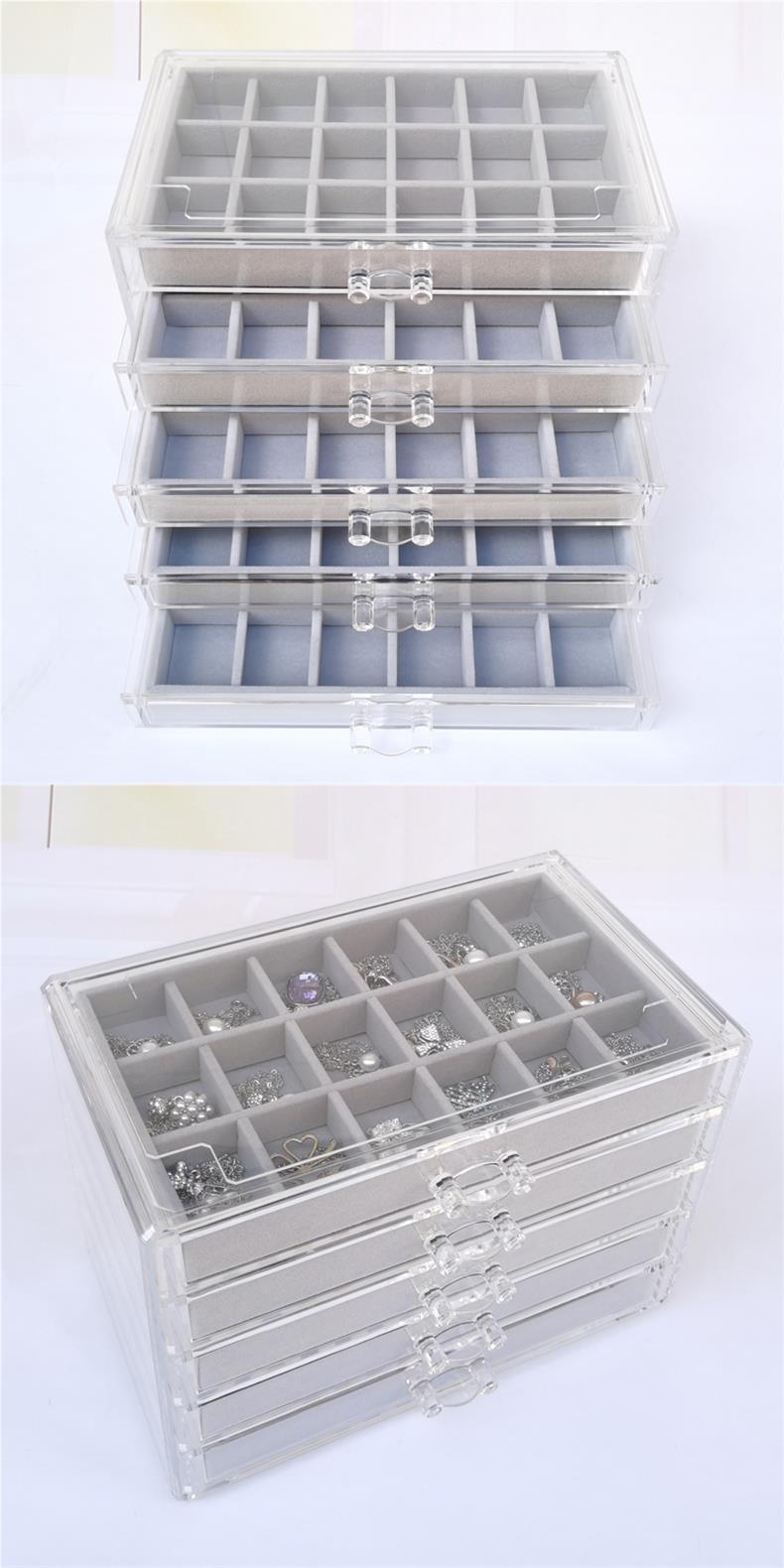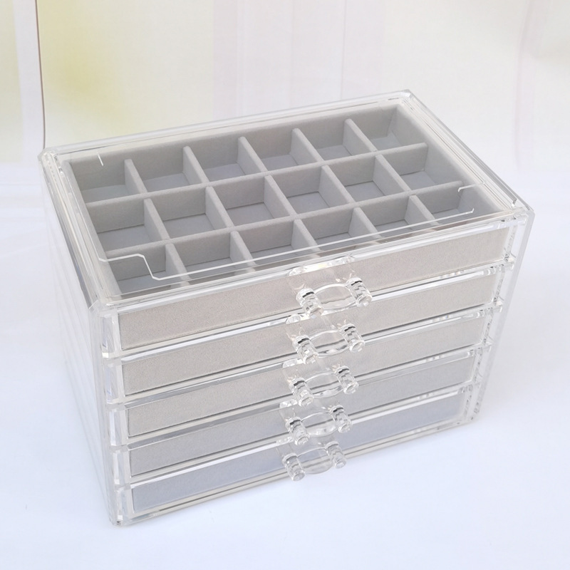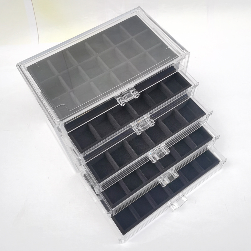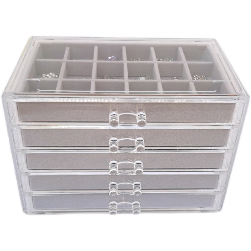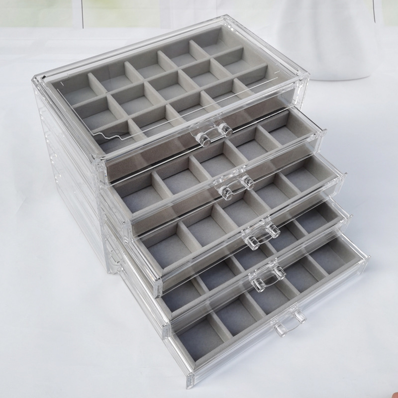 Acrylic Five-Layer Drawer Gray 90-Grids Earrings, Earrings, Rings, Jewelry Box, Household Diamond Box, Multi-Grids Storage Box