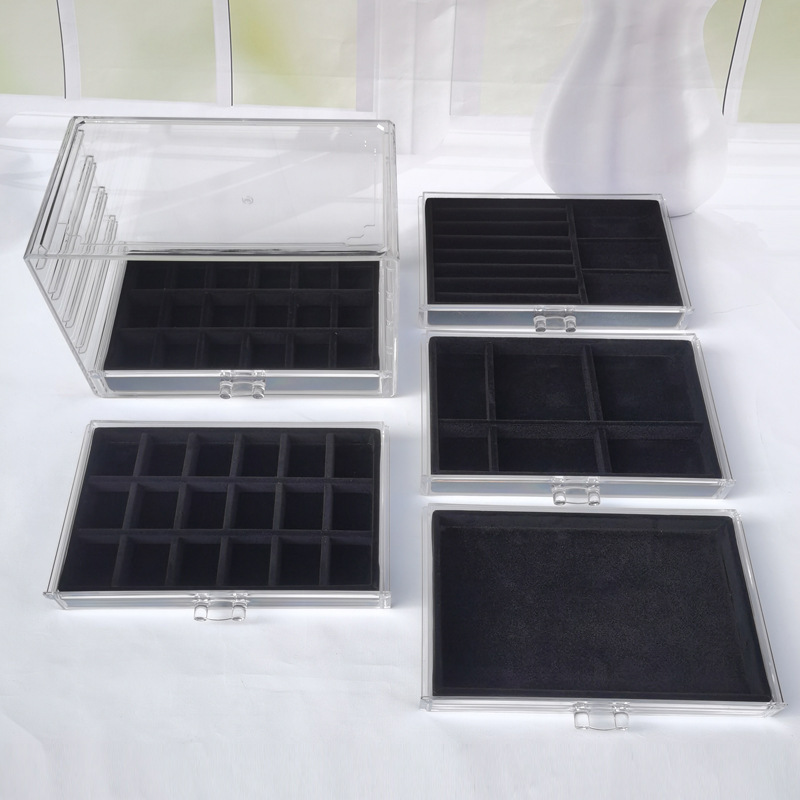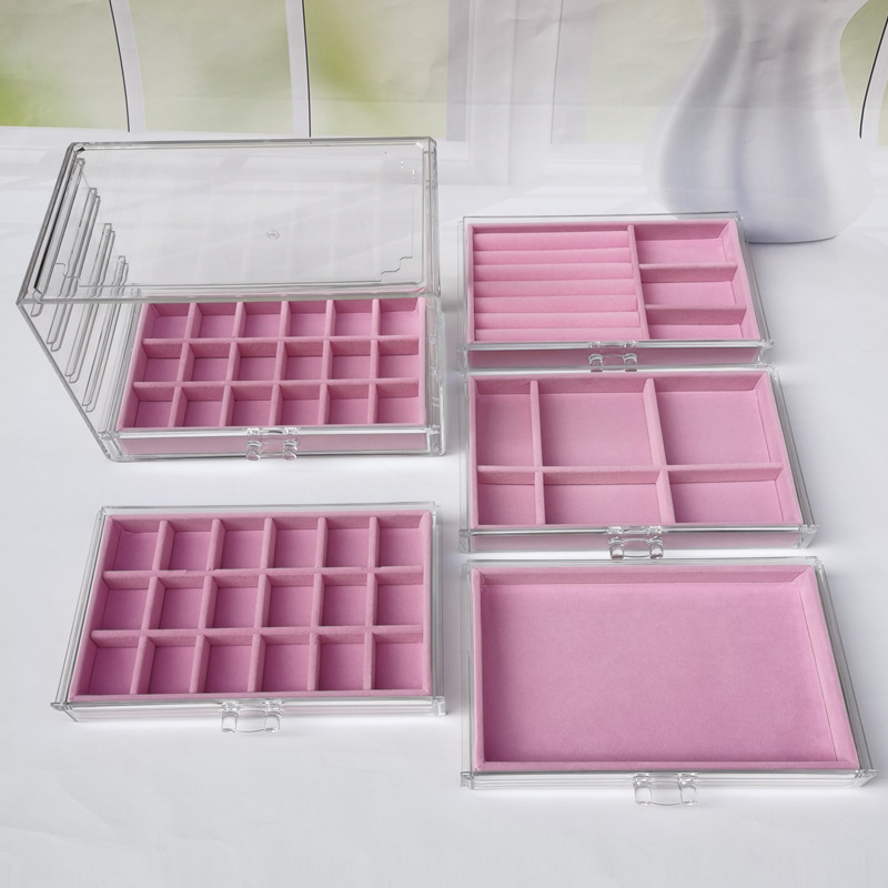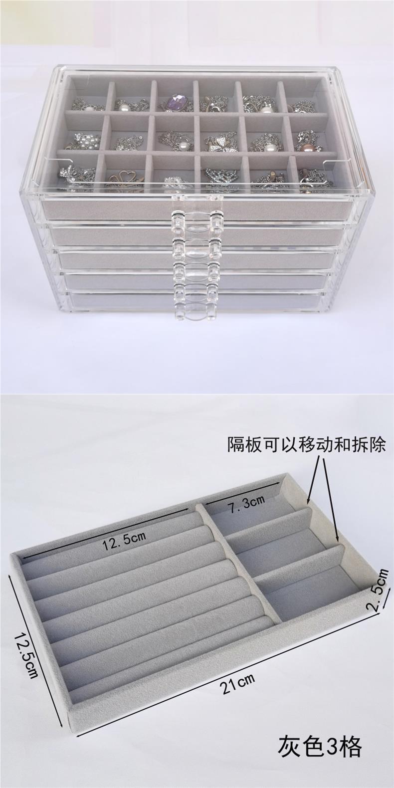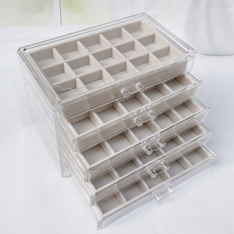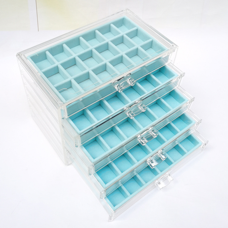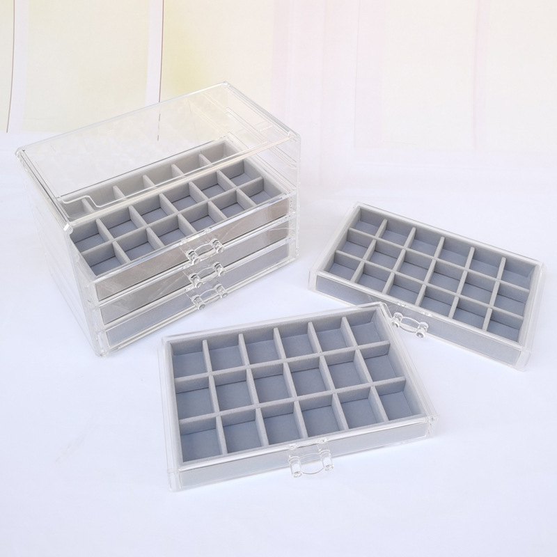 Acrylic Five-Layer Drawer Gray 90-Grids Earrings, Earrings, Rings, Jewelry Box, Household Diamond Box, Multi-Grids Storage Box