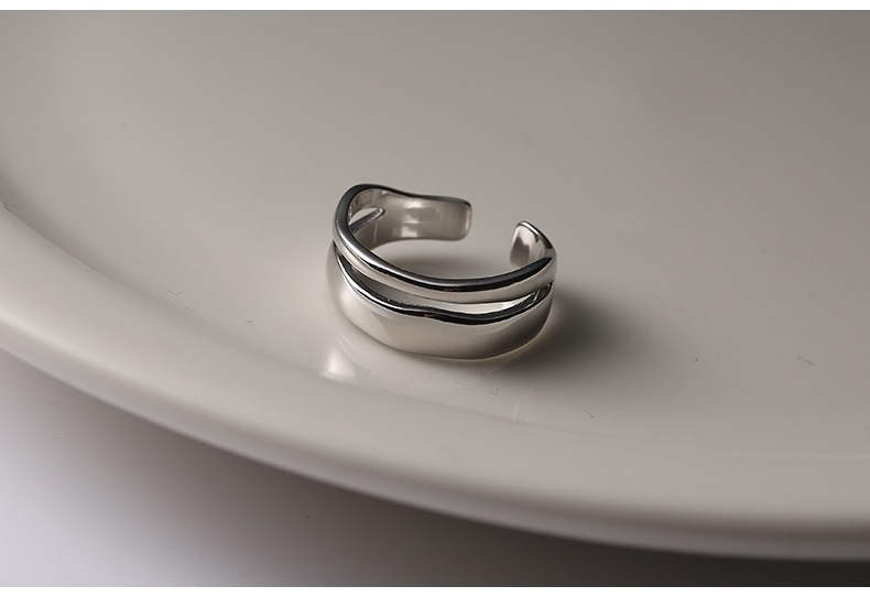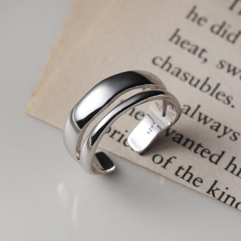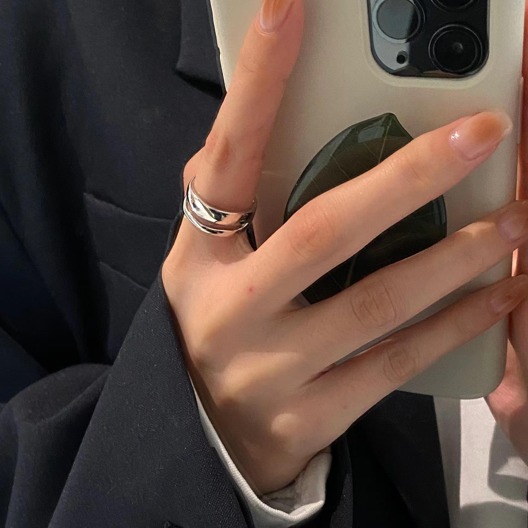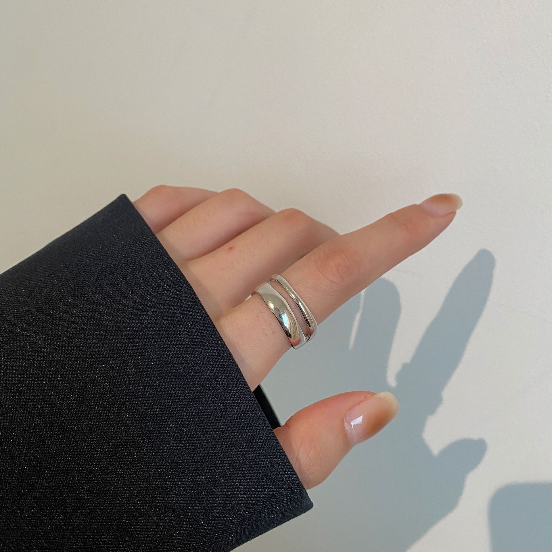Chiba Double-Layer Glossy Ring Thai Silver European and American Niche Designer Brand Simple and Fashionable Blogger Open Ring