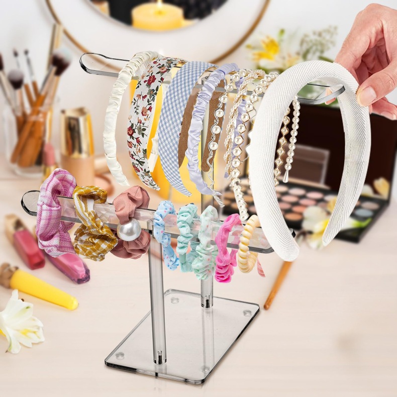 Cross-Border Acrylic Transparent T-Shaped Hair Hoop Display Rack Hairband Hairpin Jewelry Storage Rack Necklace Bracelet Display Rack