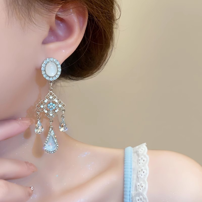 New Korean Ice Crystal Blue Baroque Water Drop Cat's Eye Earrings Accessible Luxury High-End Earrings Personalized Retro Earrings