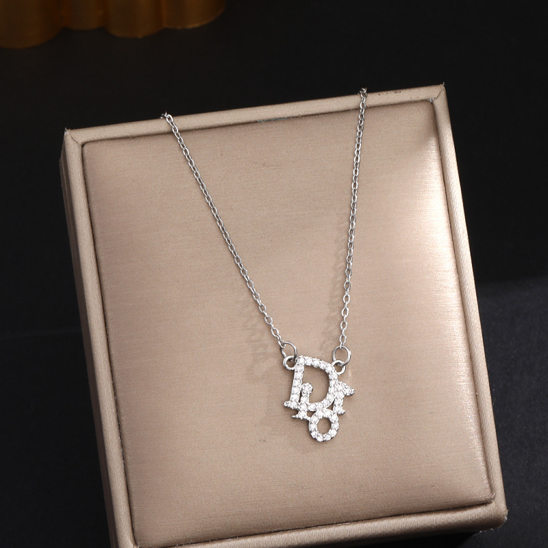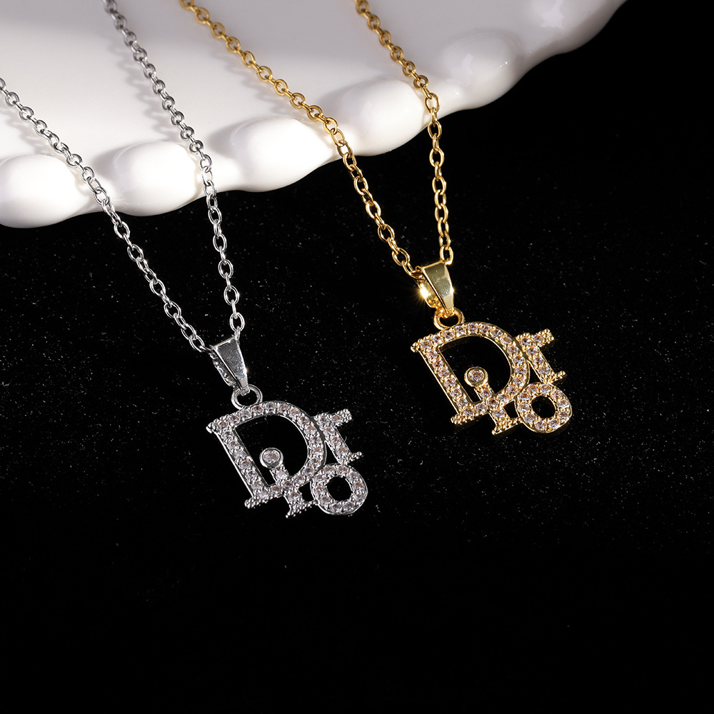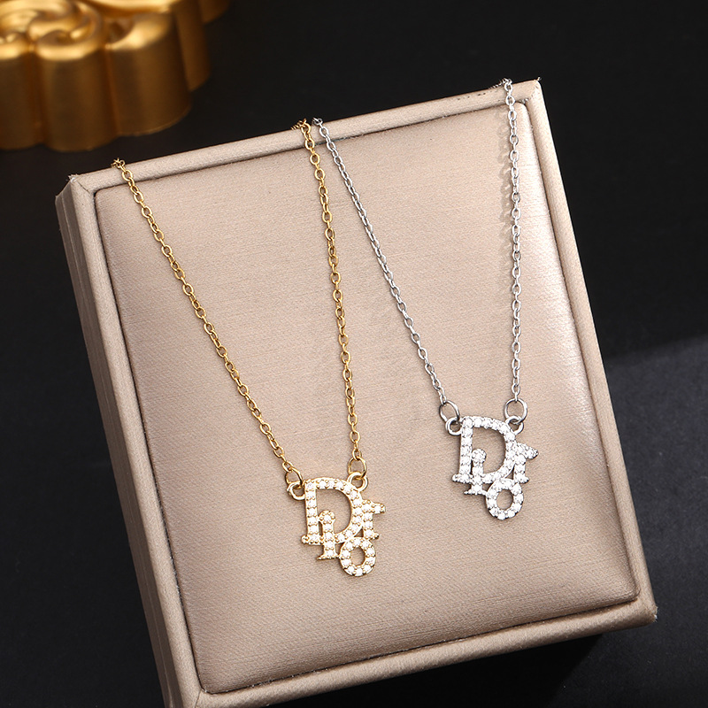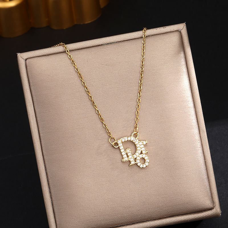 Cross-Border New Titanium Steel Necklace Women's Light Luxury Full Diamond Micro-Paved Zircon Pendant High-End Stainless Steel Clavicle Chain Jewelry