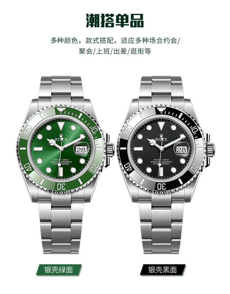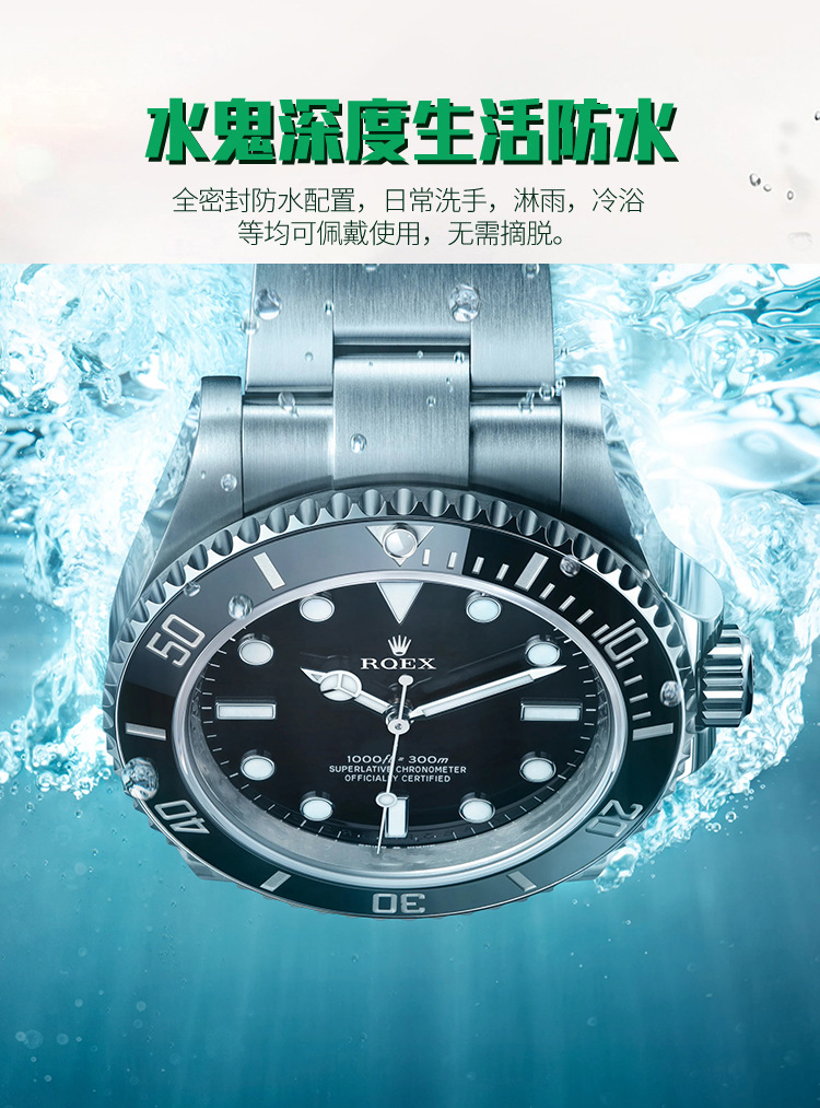 Swiss Genuine Green Water Ghost Watch Rolex Men's Fully Automatic Mechanical Watch Waterproof Stainless Steel Luminous Business Diving Watch
