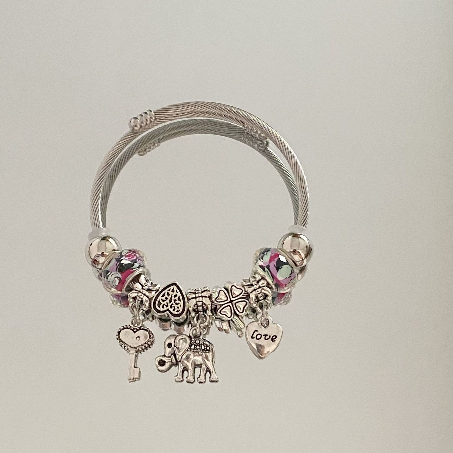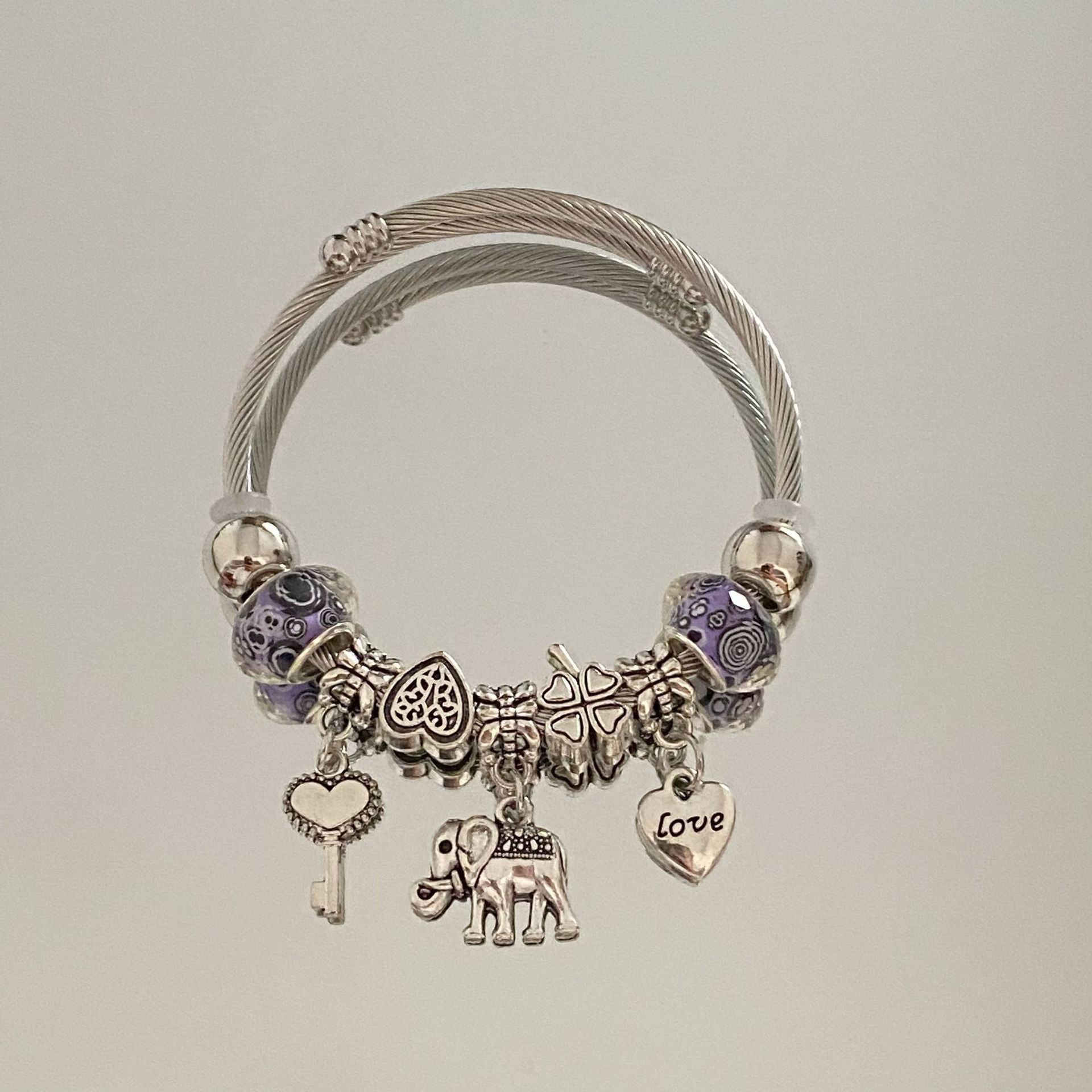 Color: Silver diamond love elephant bracelet