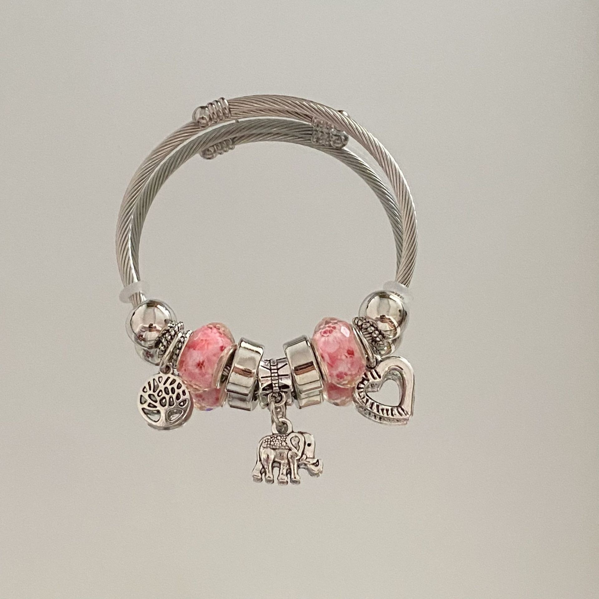 Color: Pink balloon steel ring bracelet