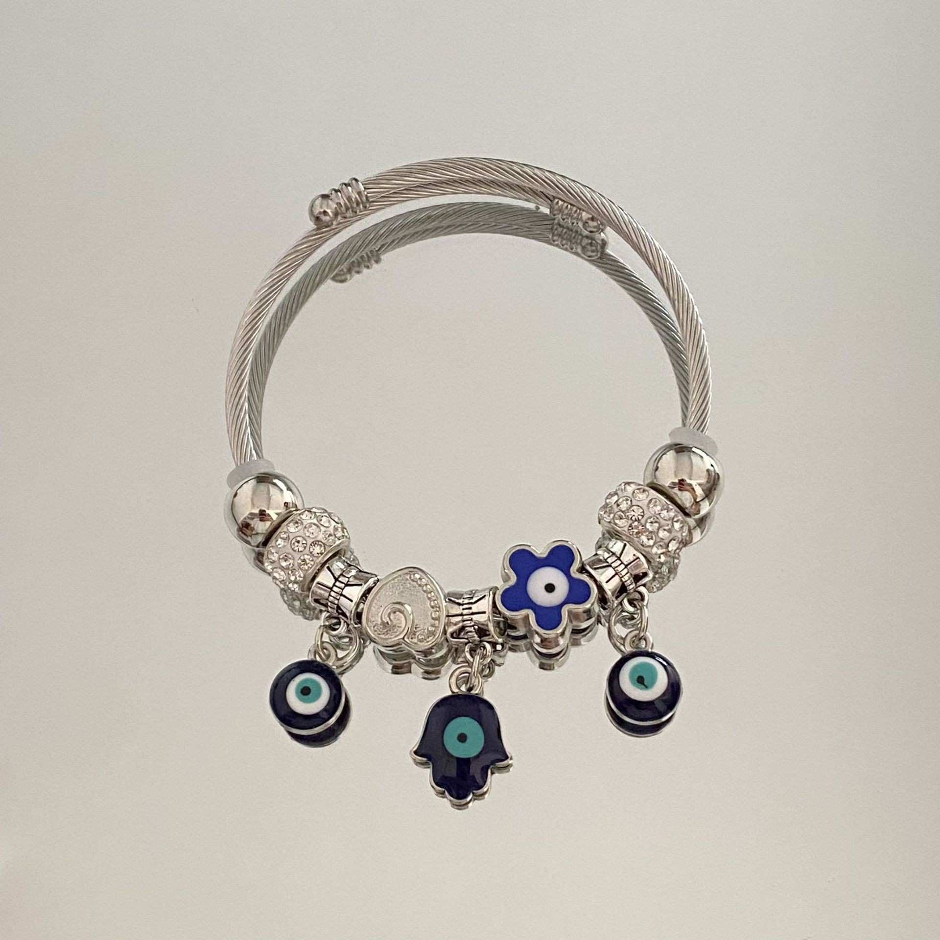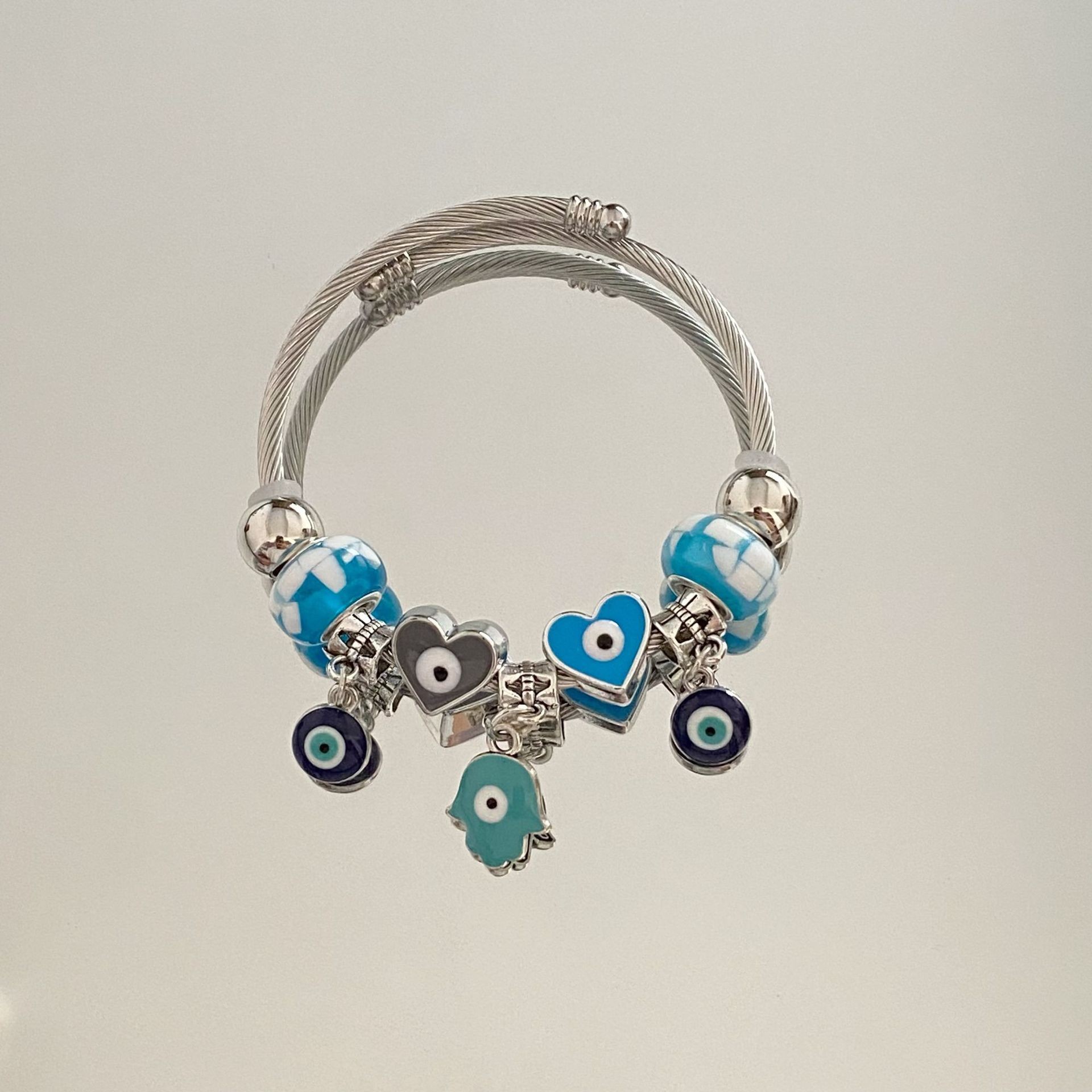Color: Steel ring blue devil's eye bracelet