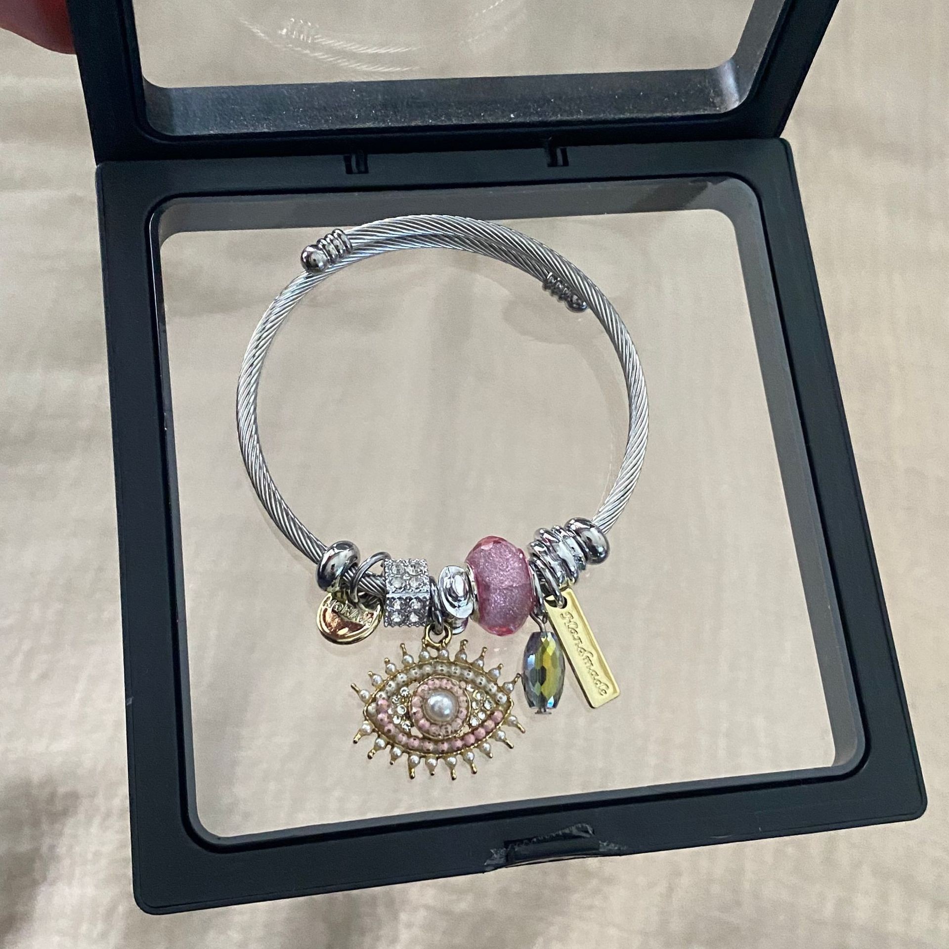 Color: Underwire pink devil's eye bracelet