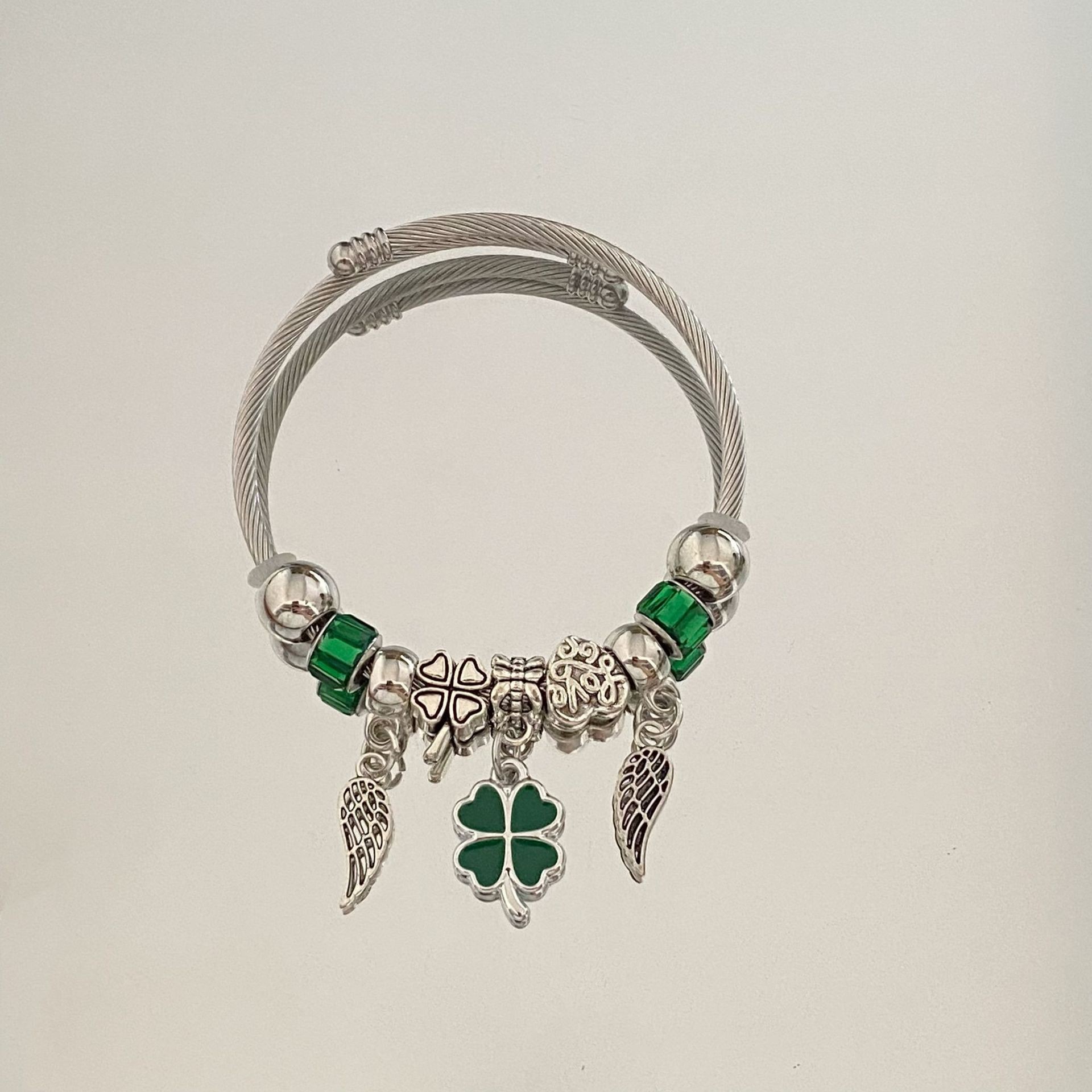 Color: Green angel wings four leaf clover bracelet