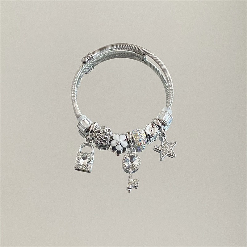 Color: Silver white star key bracelet with diamonds