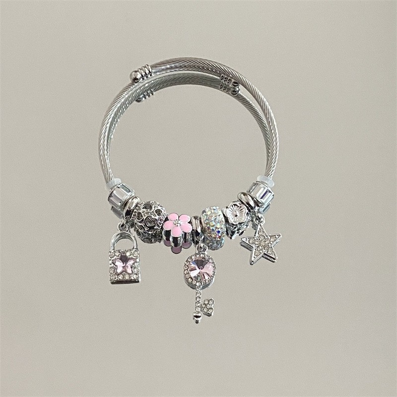 Color: Silver pink star key diamond bracelet