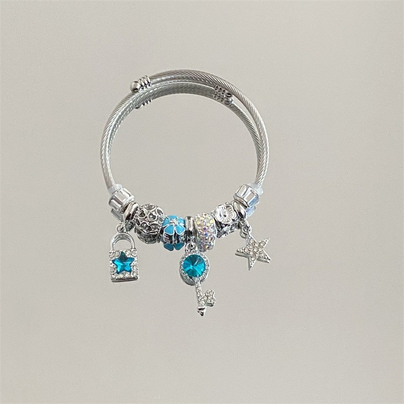 Color: Silver blue star key diamond bracelet