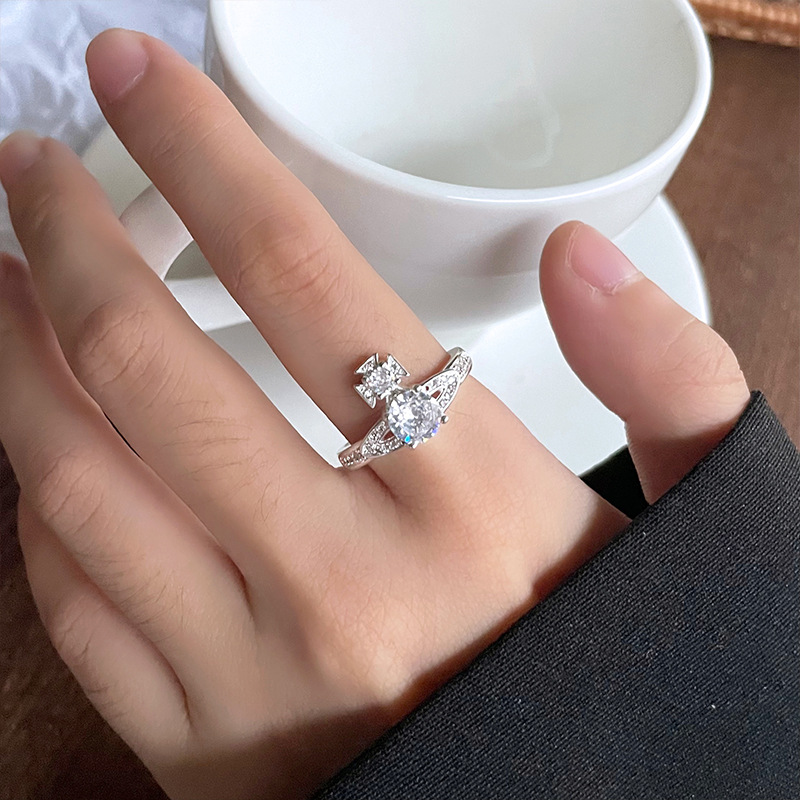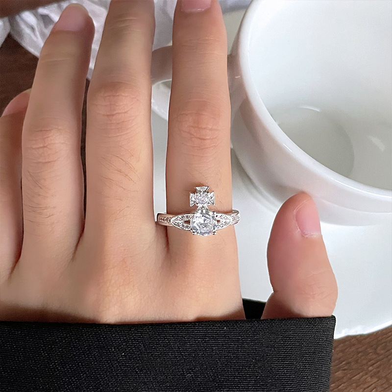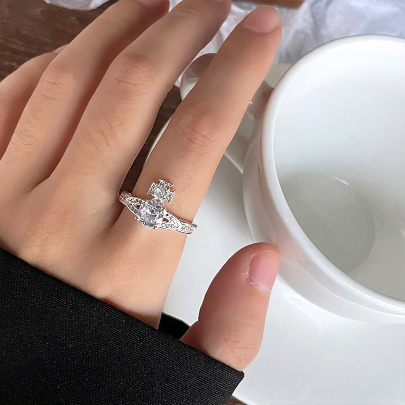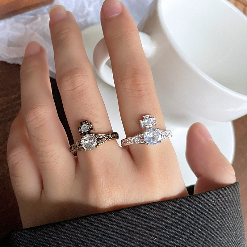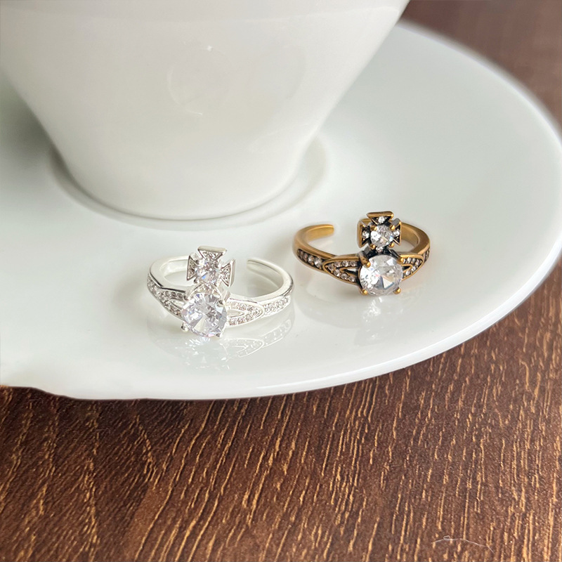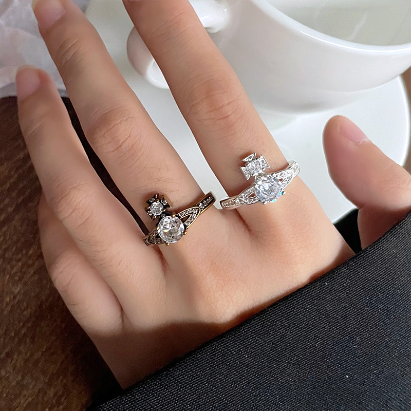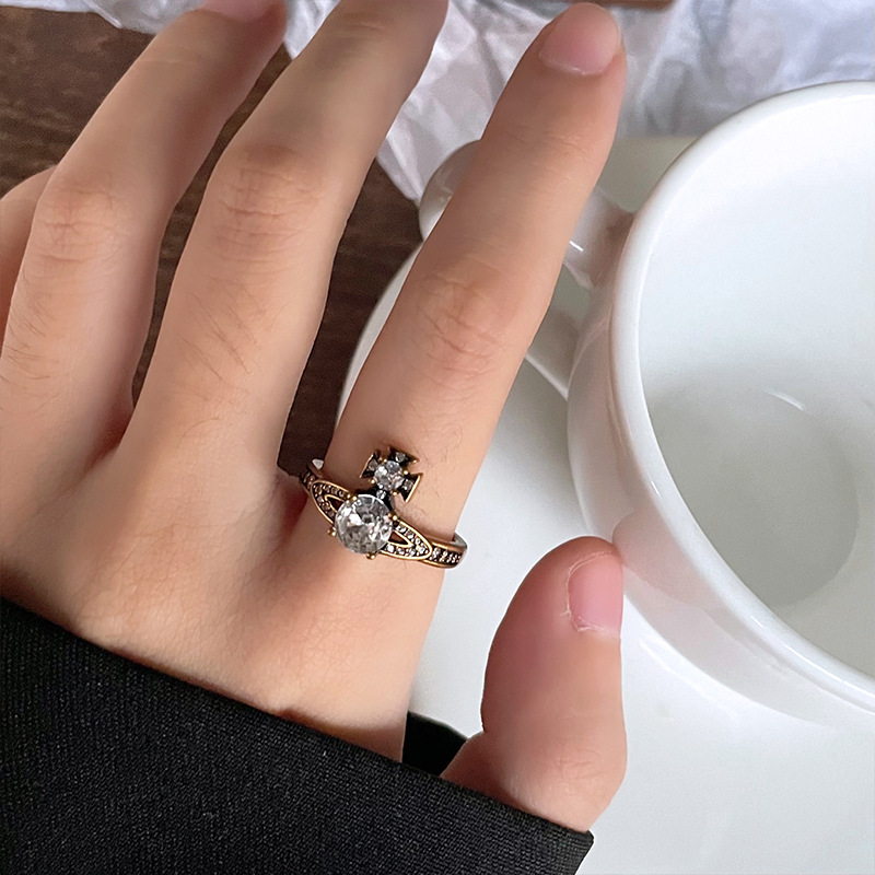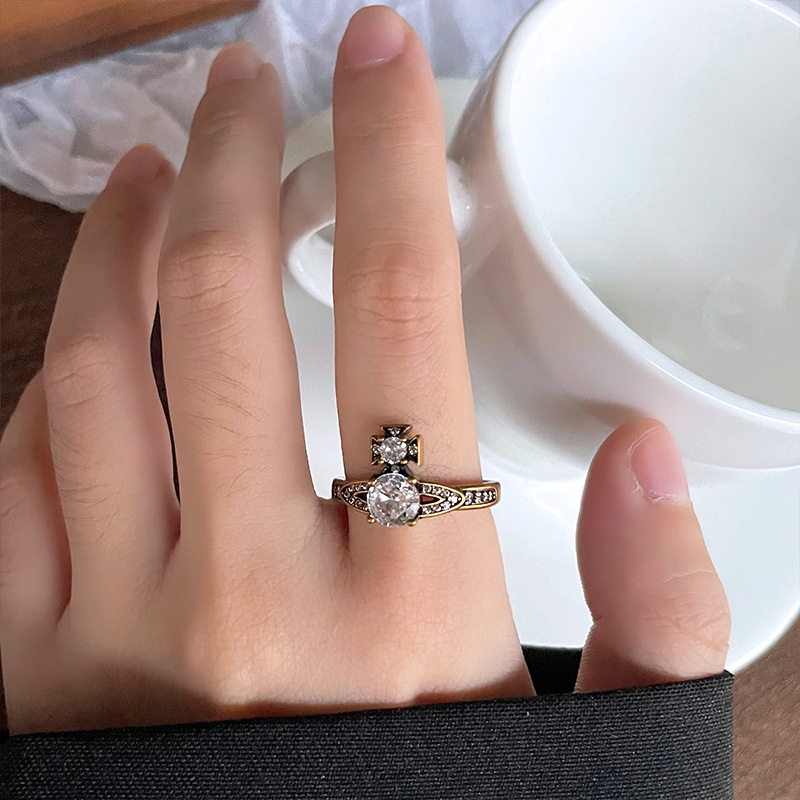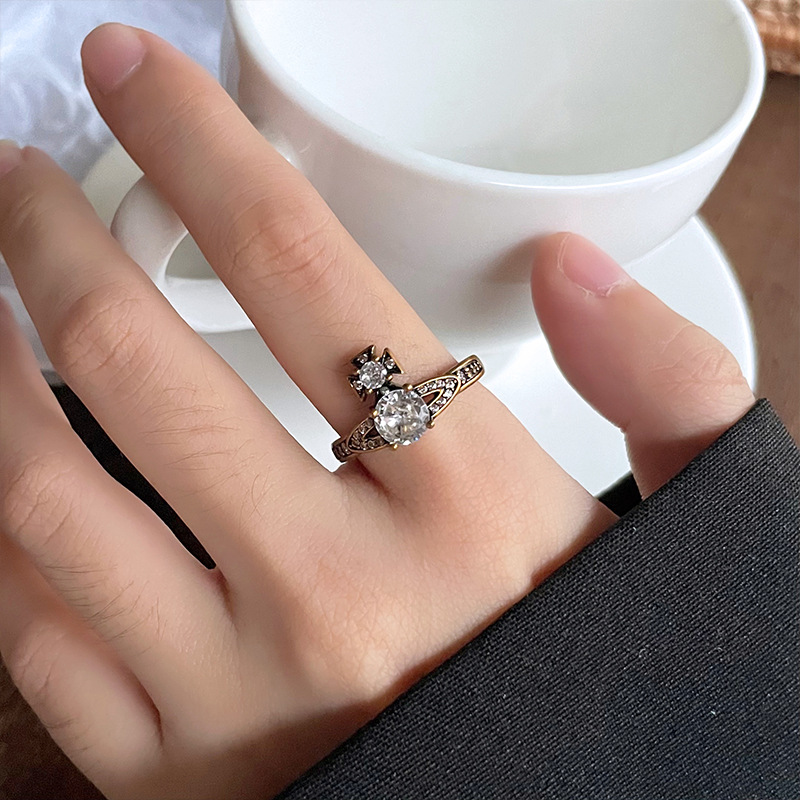 Lanzhi Saturn Full Diamond Light Luxury High-End 925 Silver Ring for Women Korean Niche Ancient Gold Open Ring Non-Fading