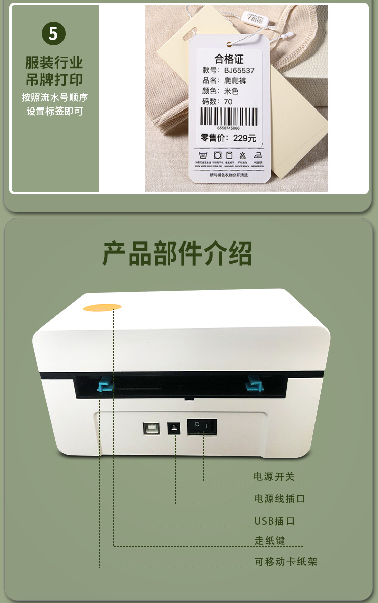 Model: 110mm international printer tb41 computer version (supports computers)