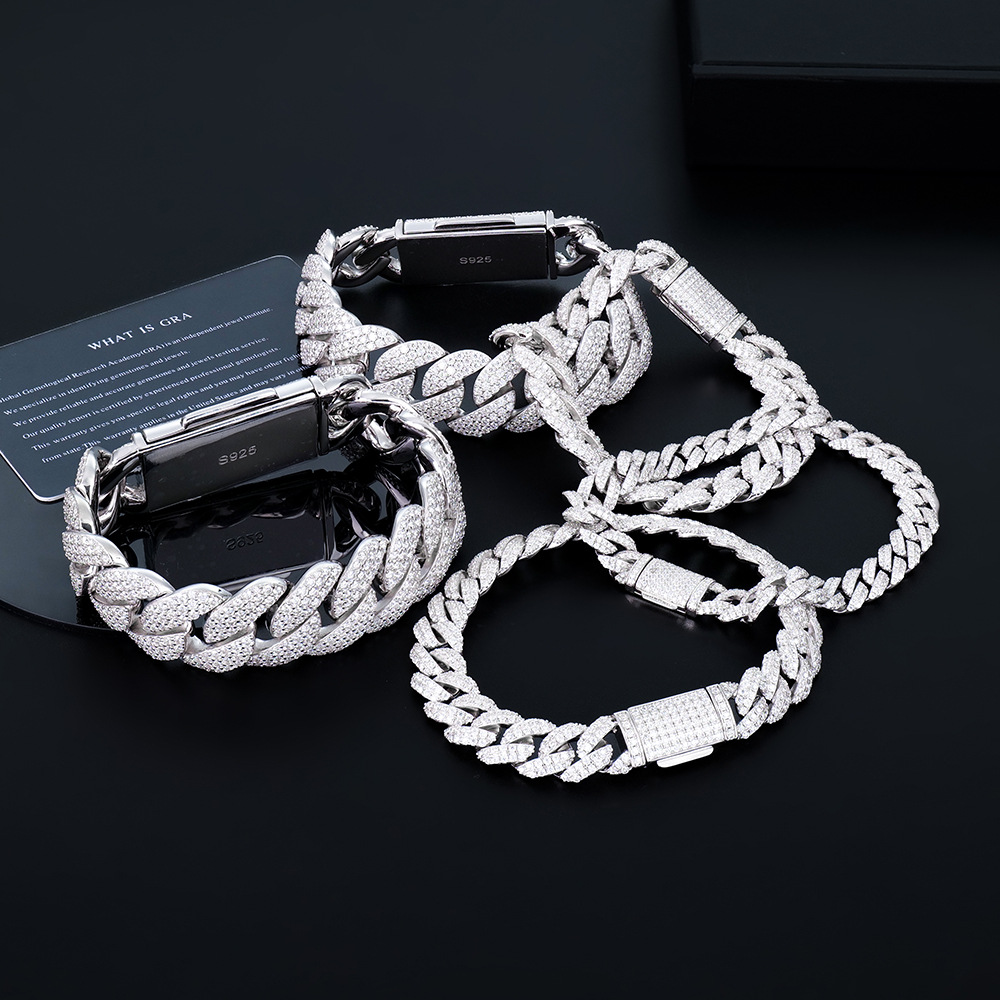8mm Arc Cross-Border European and American Cuban Chain Men's Hip-Hop Rap Moissanite Bracelet Jewelry Accessible Luxury and High-End Sense