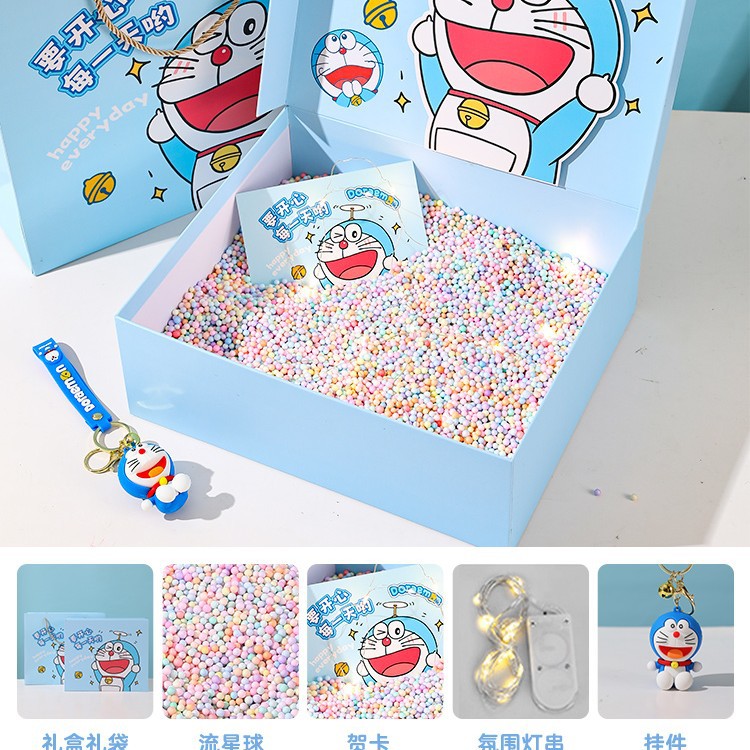 Color: Doraemon cartoon three-dimensional packaging box + meteor + light string + pendant