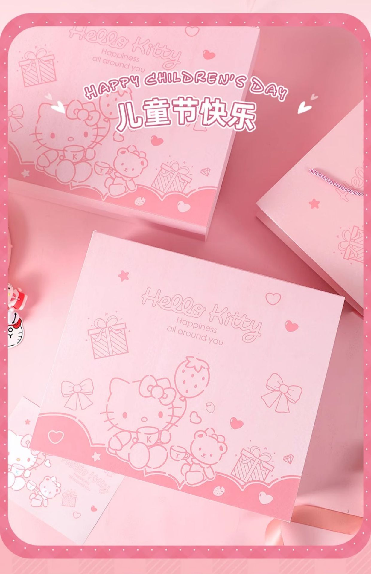 Color: Hello kitty cartoon three-dimensional packaging box + gift bag