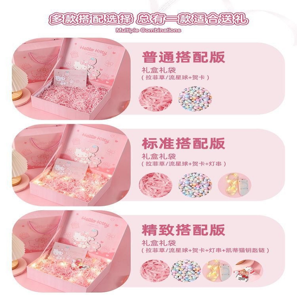 Color: Hello kitty cartoon three-dimensional packaging box + raffia + light string + keychain