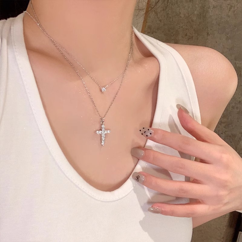 Titanium Steel Non-Fading Bm Same Style Sparkling Diamond Cross Necklace Accessories for Women to Wear Boogers Diamond Clavicle Chain Accessible Luxury Niche