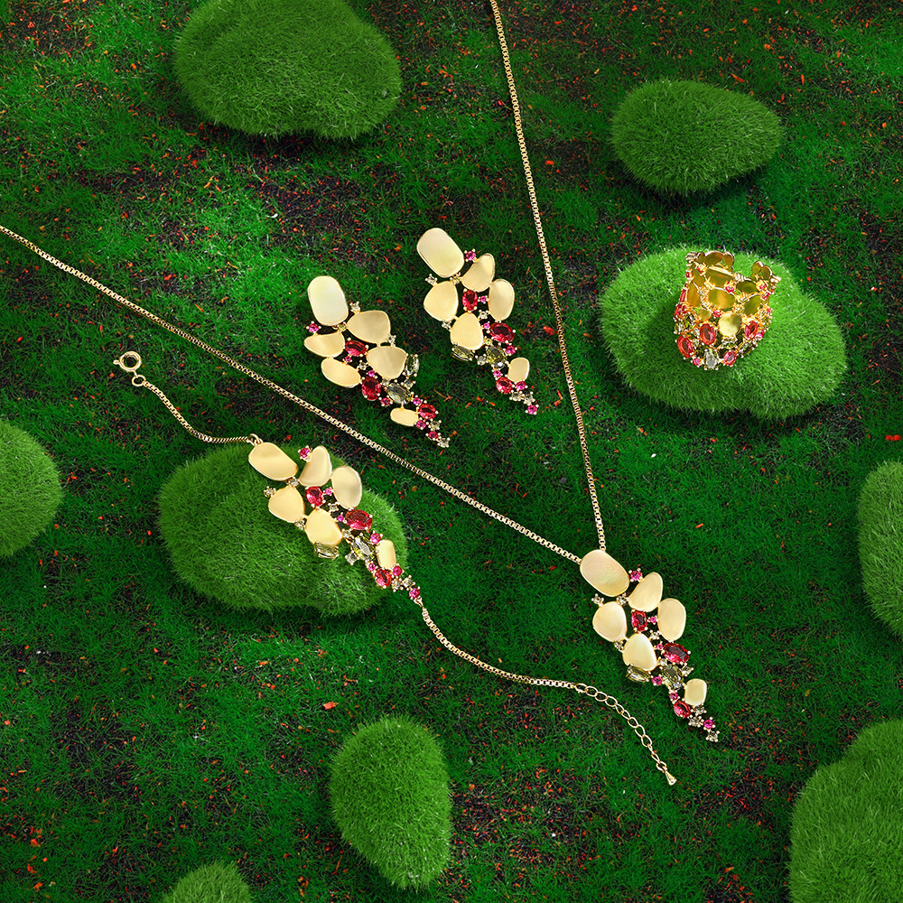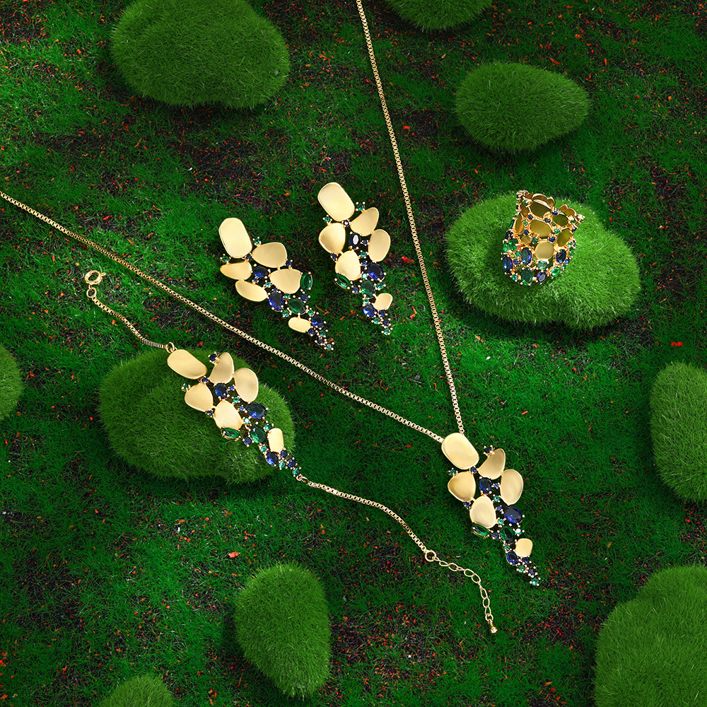 Cross-Border Hot-Selling Fashion Luxury Jewelry Set 18K Real Gold with Colored Gemstone Dress Set Chain Manufacturer Supply