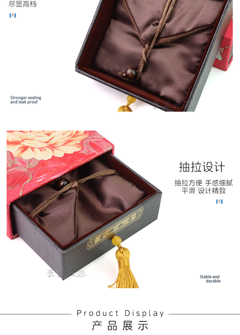Specifications and models: Chinese red tassel drawer box; strait style tassel drawer box