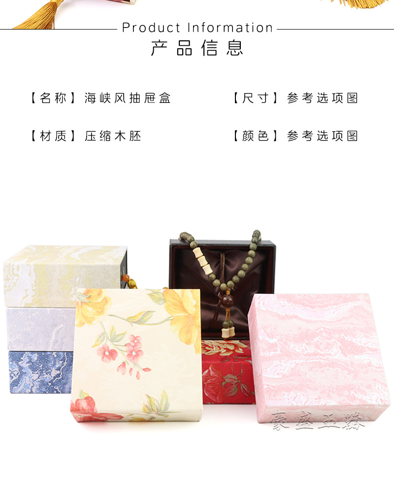 Specifications and models: Beige floral tassel drawer box; strait style tassel drawer box