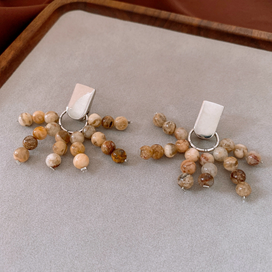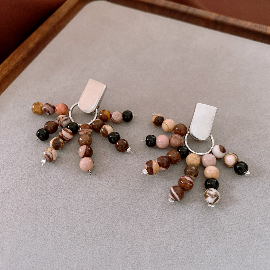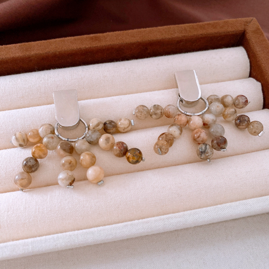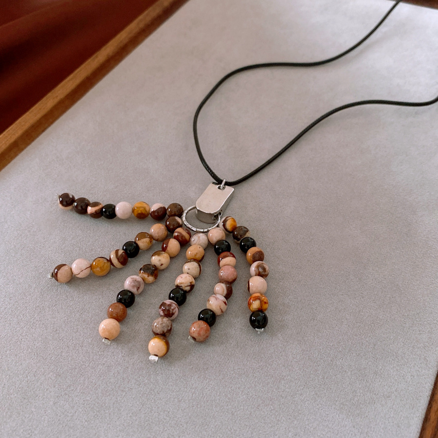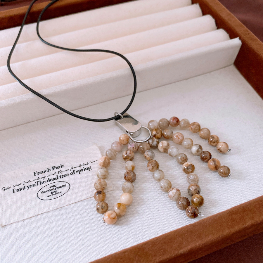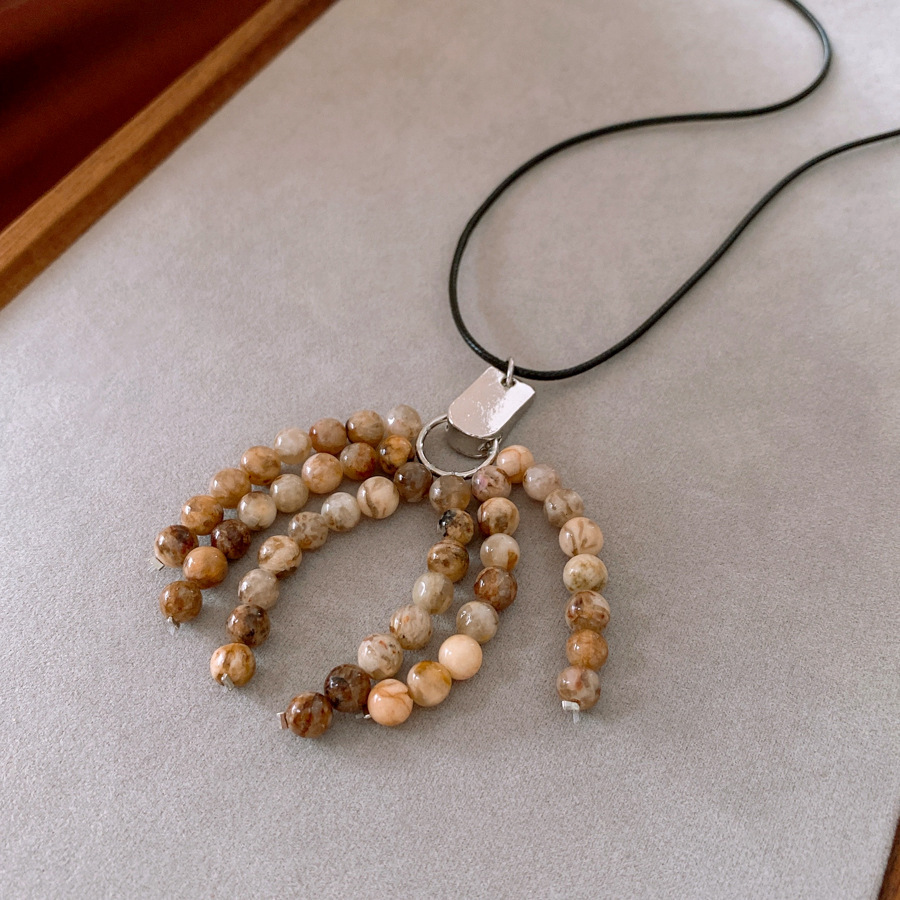 French-Style Vintage Beaded Stone Pendant Necklace, Light Luxury High-End Clavicle Chain Design Niche Jewelry Set for Women