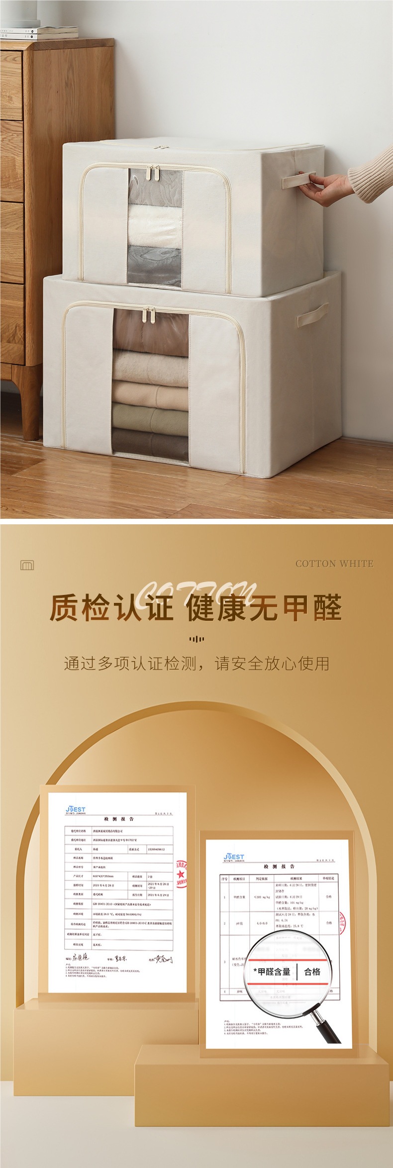 Cotton and linen pu yellow wardrobe storage box [skin-friendly fabric]✓