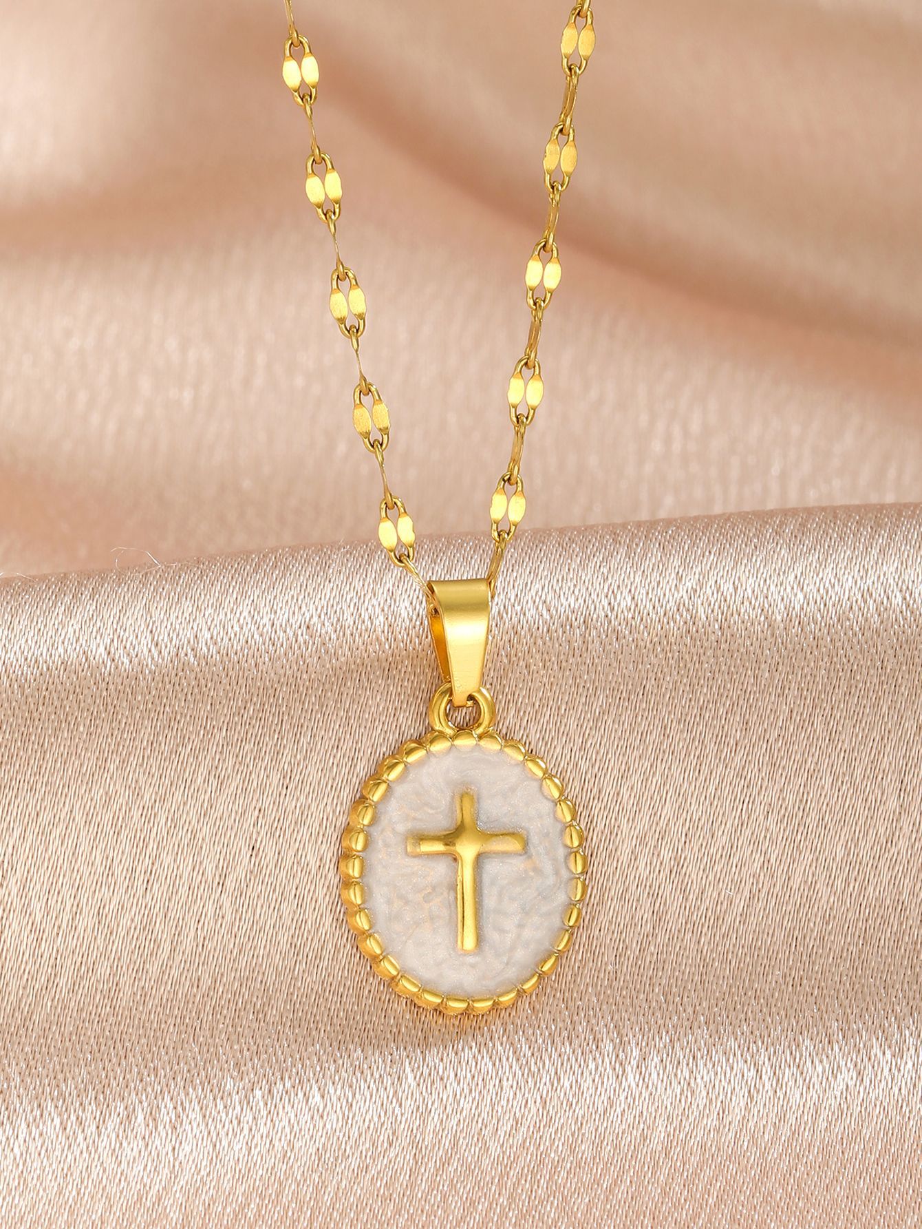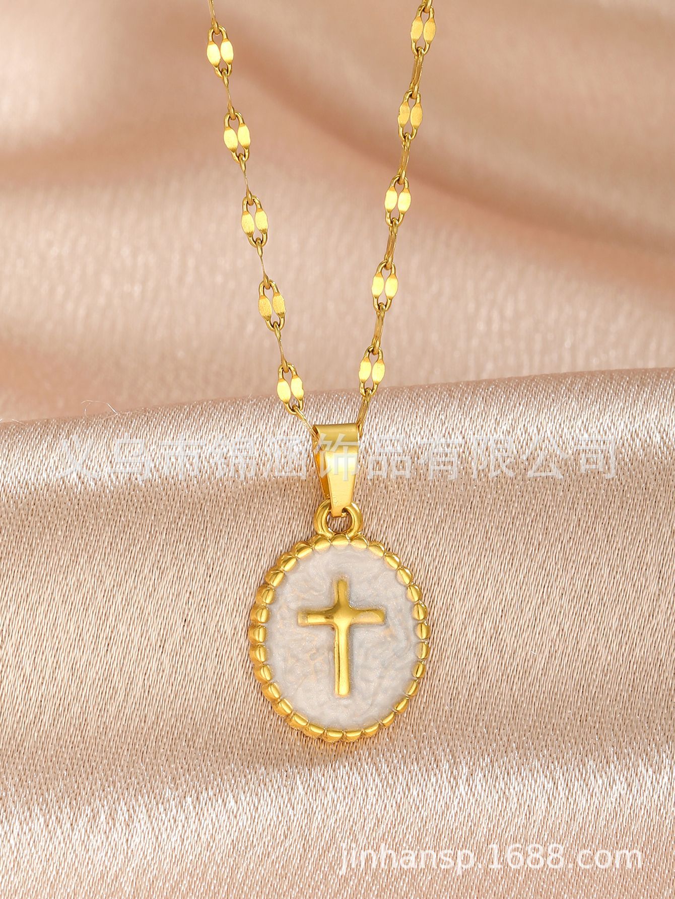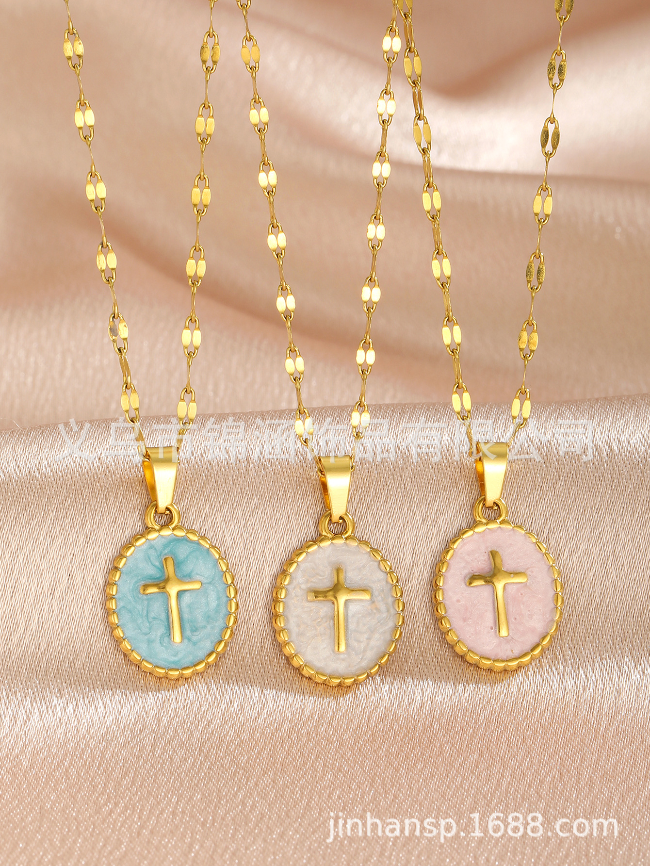 European and American French Oil Dripping Round Cross Stainless Steel Pendant Necklace Women's Exquisite and Simple DIY Titanium Steel Accessories