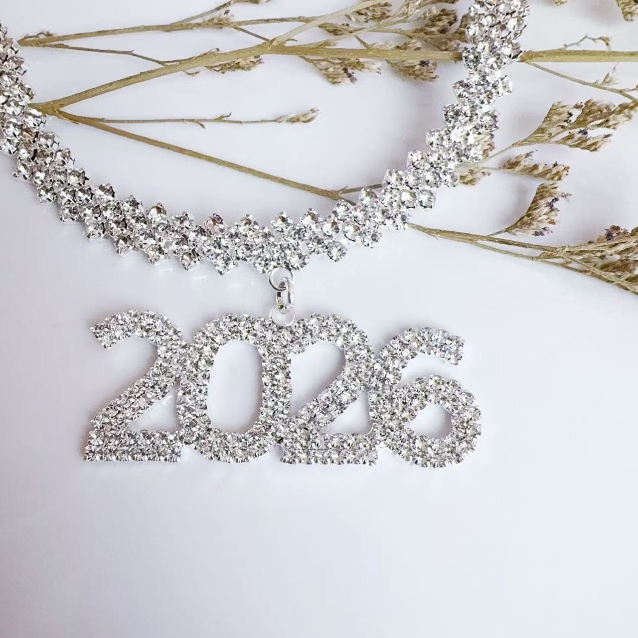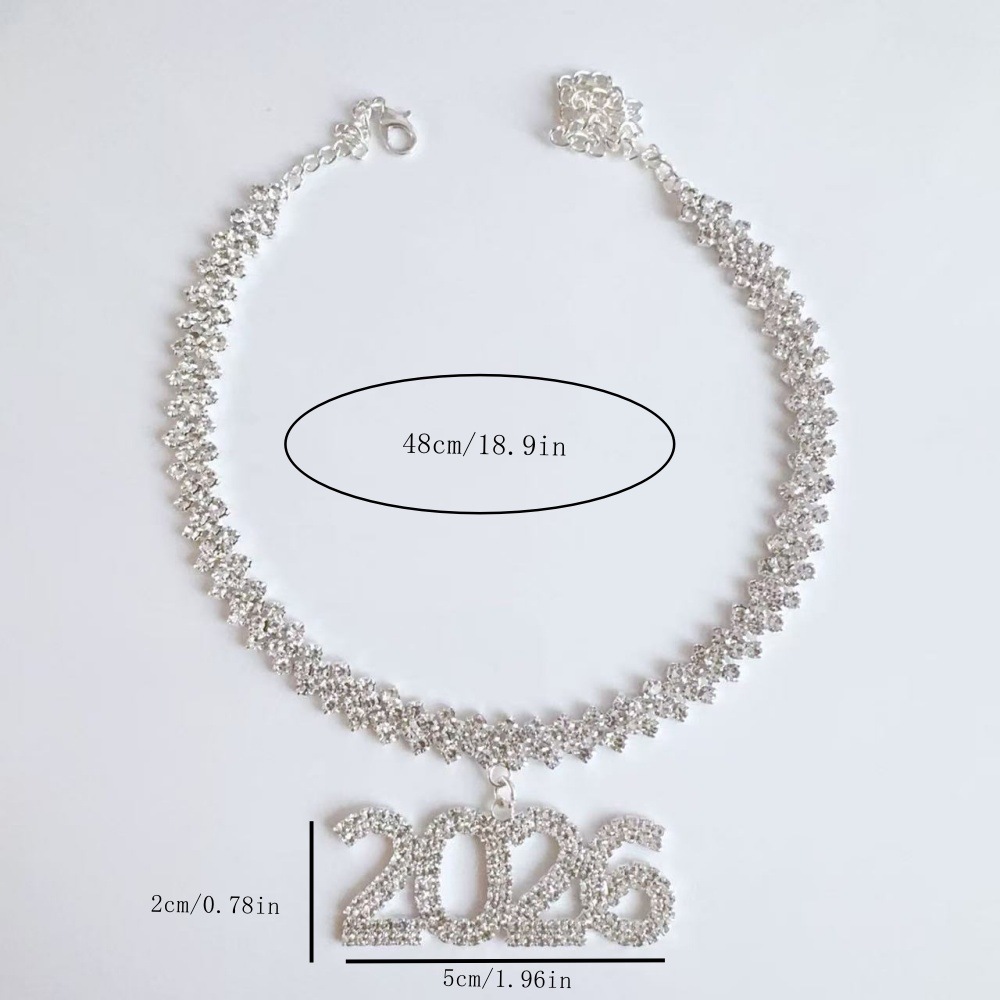 Cross-Border Popular Rhinestone Number 2026 Pendant Cuban Necklace Jewelry for Men and Women Hip-Hop Nightclub Short Clavicle Chain