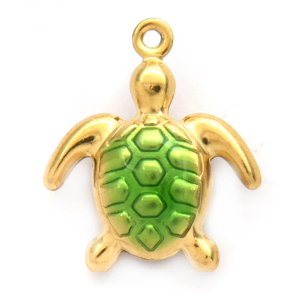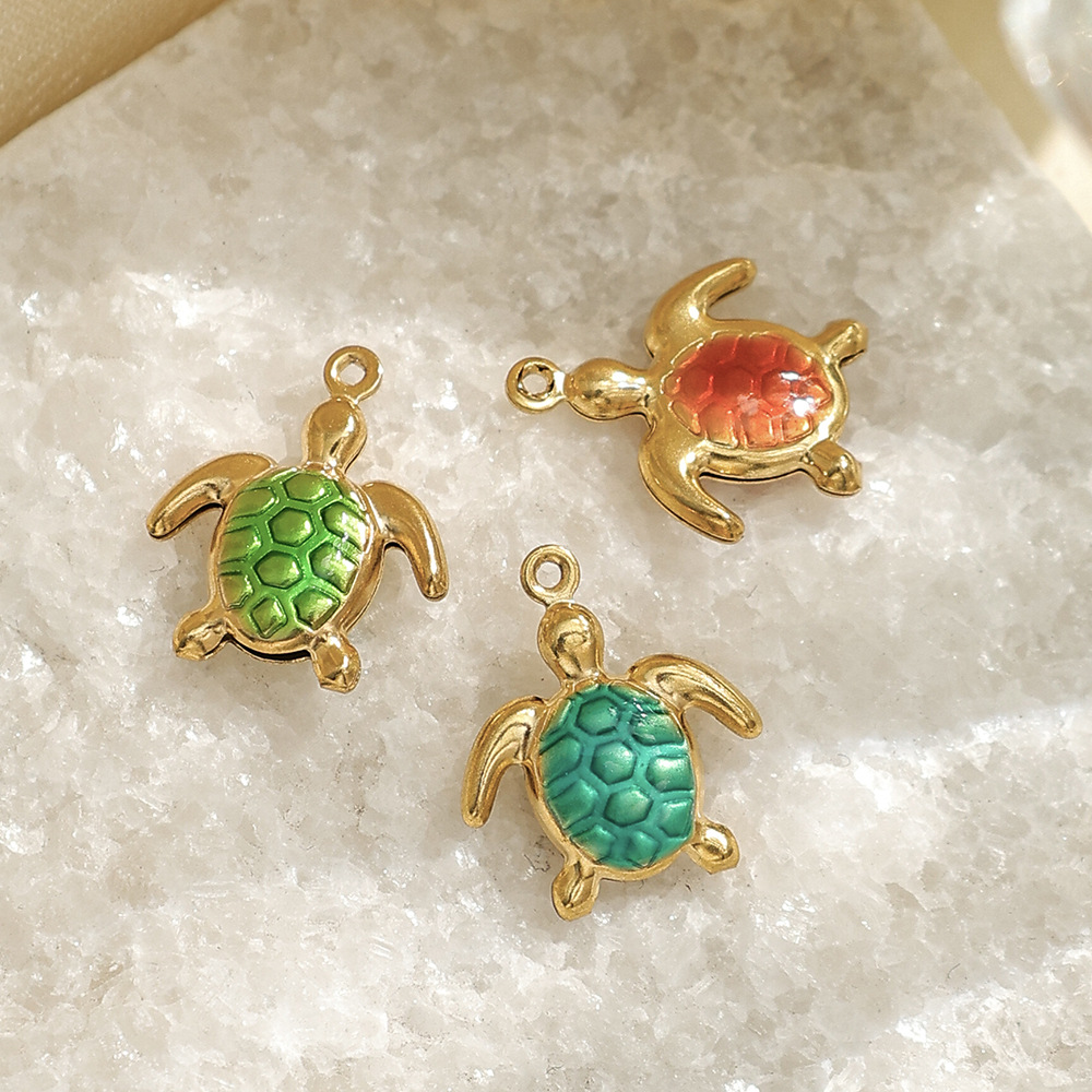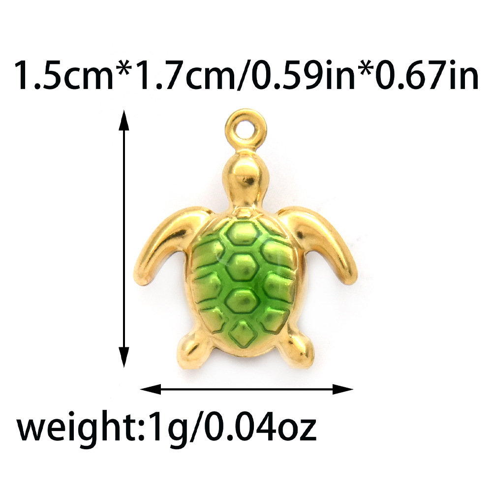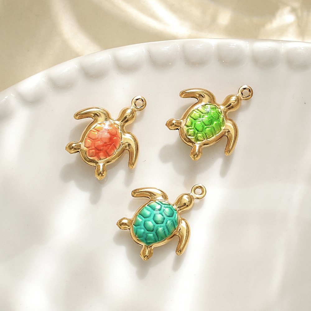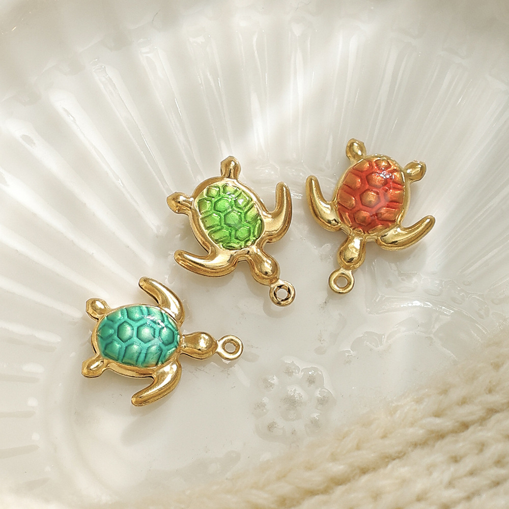 304 Stainless Steel Colorful Turtle Pendant Hawaiian Style Oil Dripping Beach Ocean Style Hollow Turtle DIY Pendant