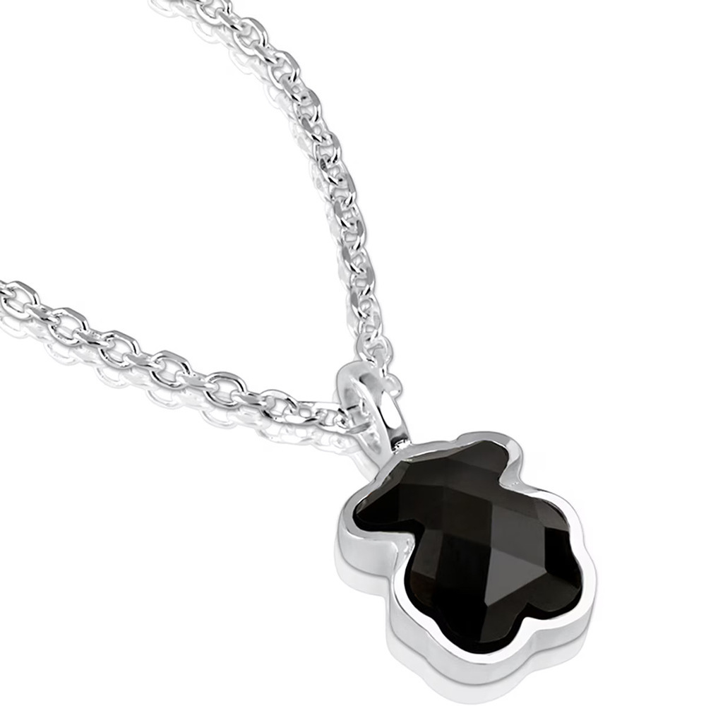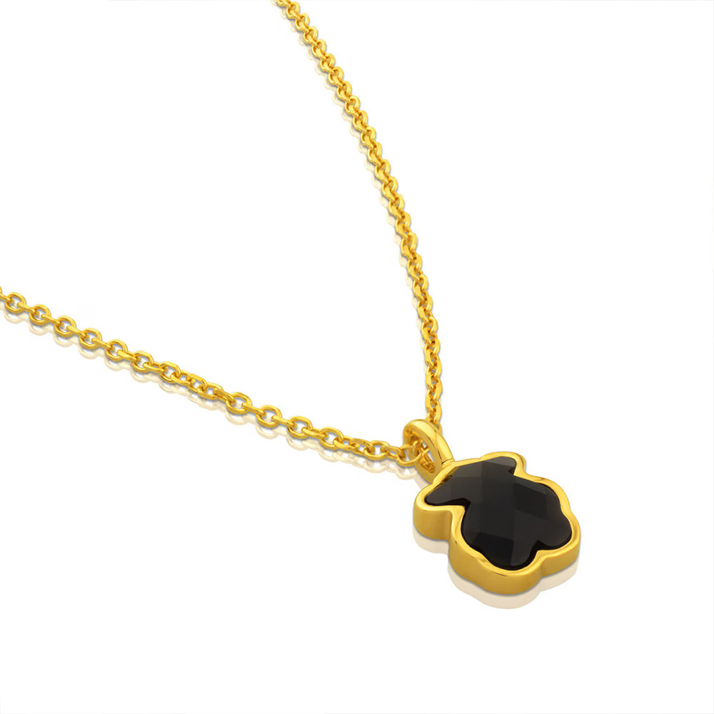 Item number: Gemstone fritillary black onyx bear necklace peach bear necklace