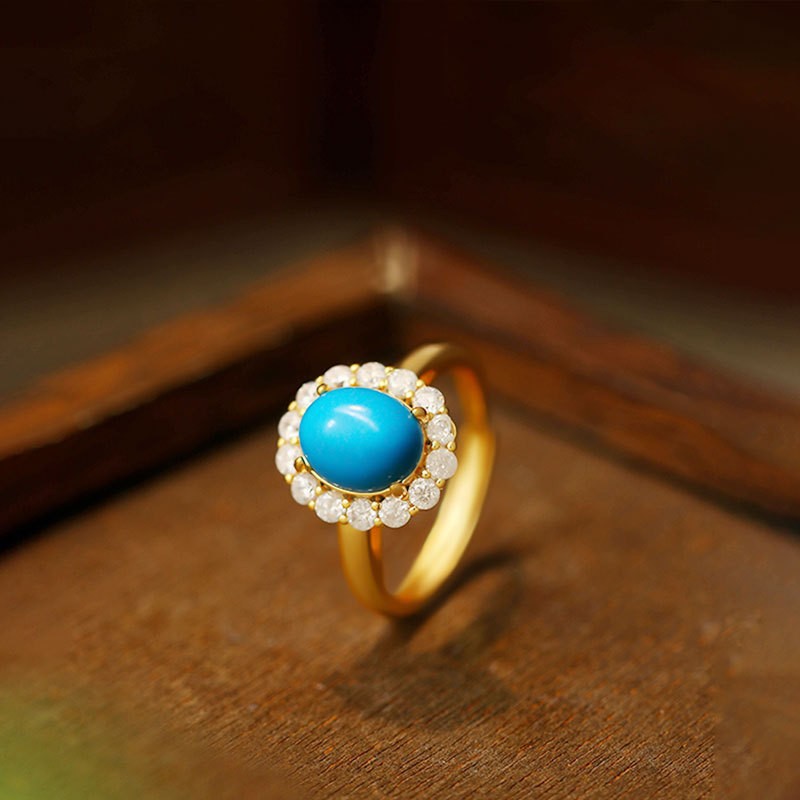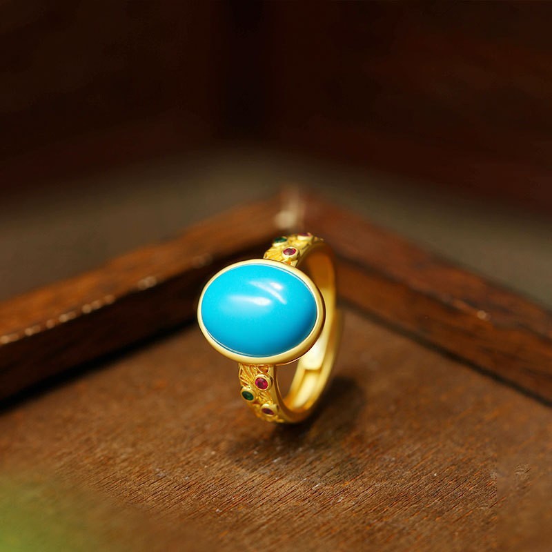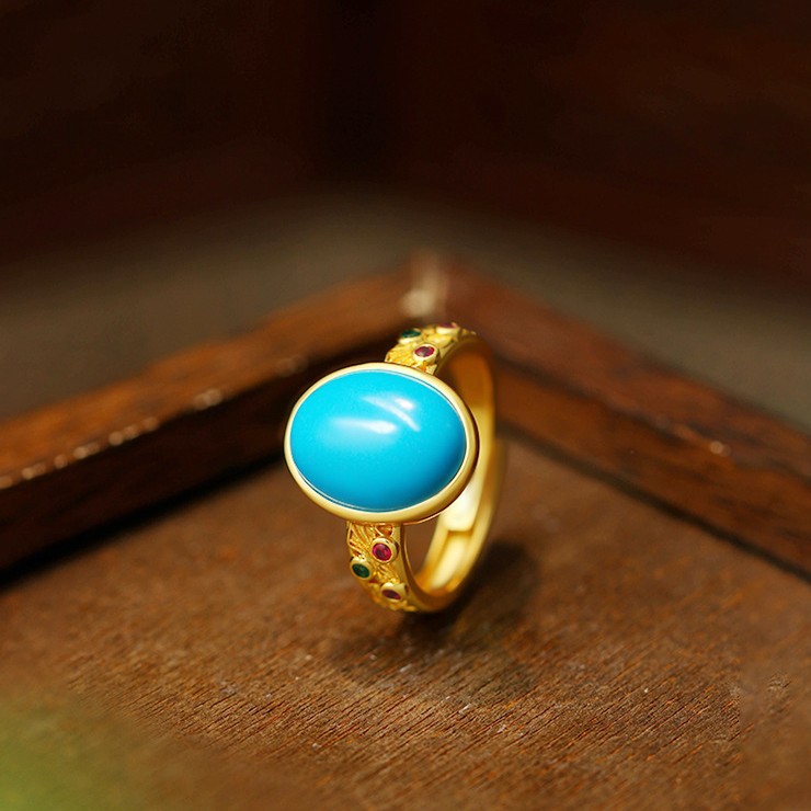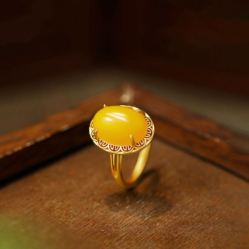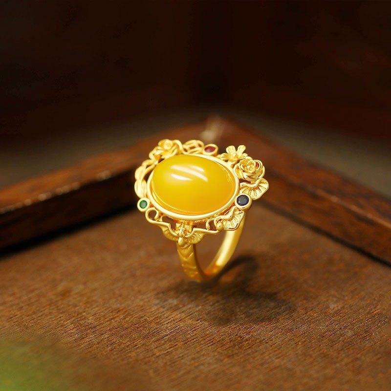Cross-Border Temu Hot-Selling Supply Niche Design Ancient Gold Imitation Jade Flower Open Ring Men's and Women's Jewelry