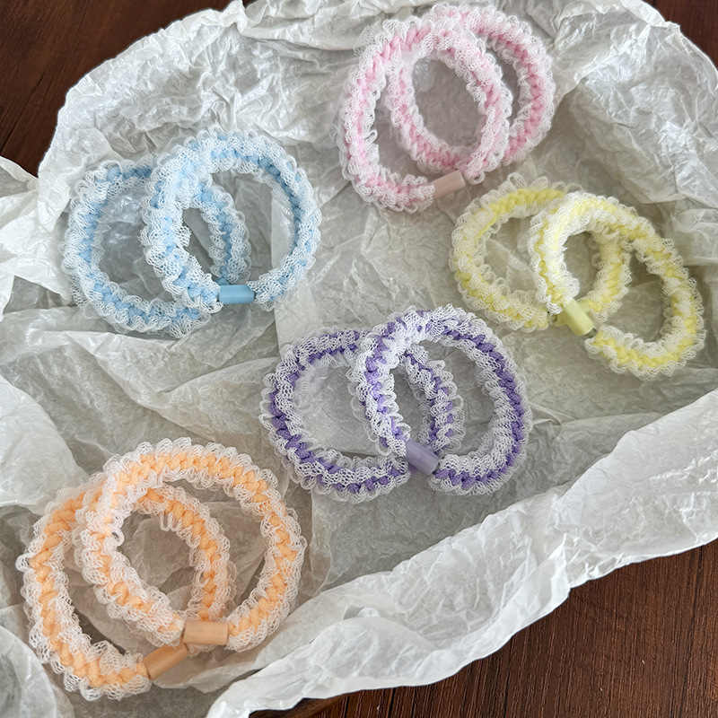 Summer Super Fairy Lace Hair Band Dopamine Candy Color High Ponytail Hair Rope Cute Rubber Band Bracelet Leather Case Wholesale